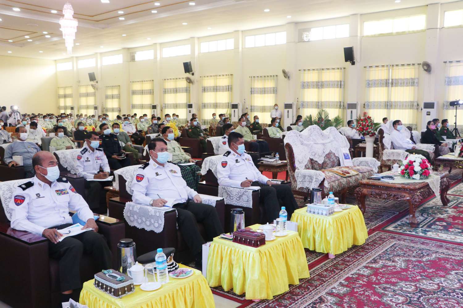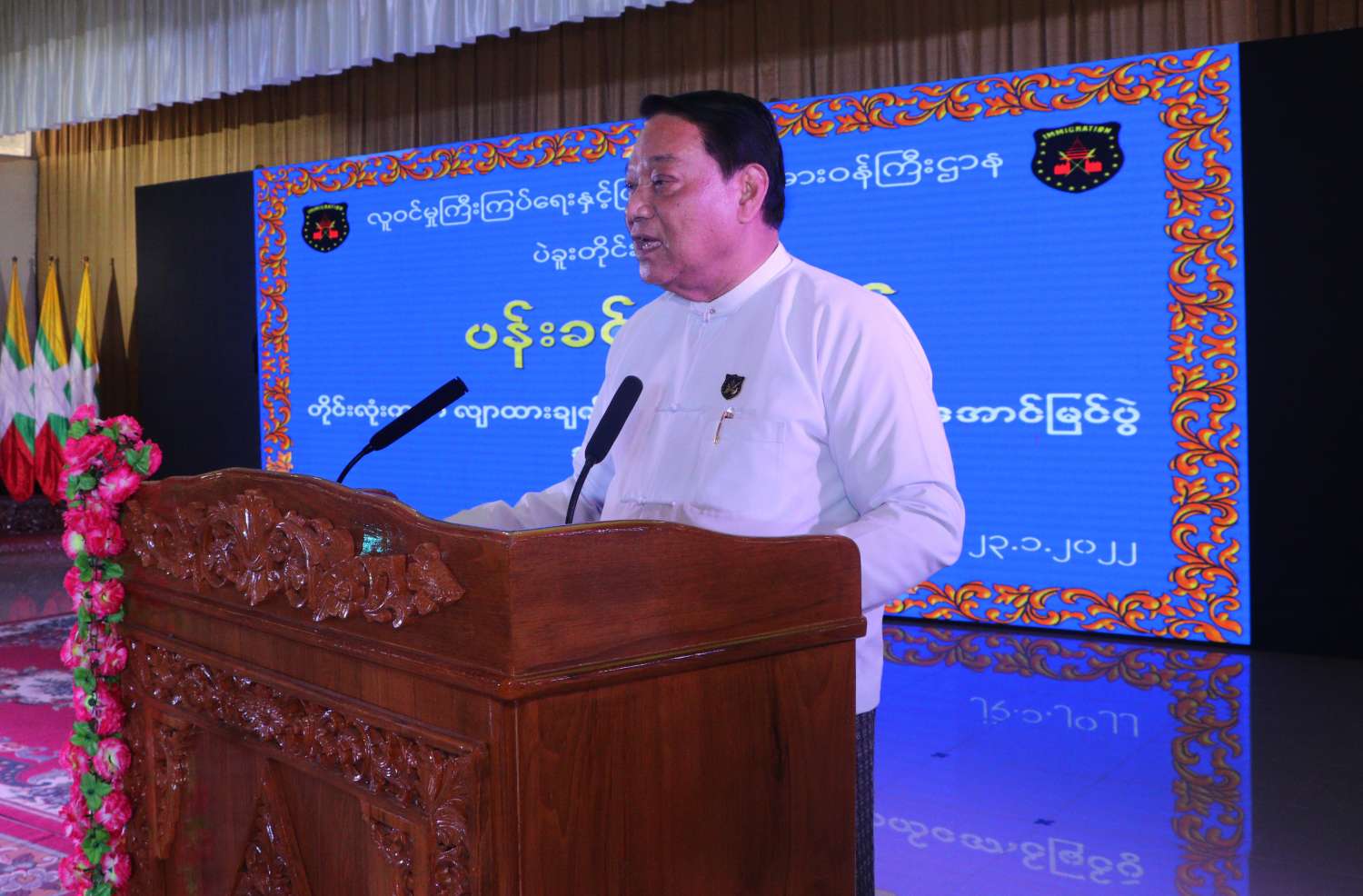 ရှေးဦးစွာ ပြည်ထောင်စုဝန်ကြီး ဦးခင်ရီ က နိုင်ငံတော်၏အနာဂတ်အတွက် မဖြစ်မနေ ဆောင်ရွက်ရမည့် နိုင်ငံသားတိုင်း ကိုင်ဆောင်သင့်သည့် ကတ်ပြားတစ်မျိုးမျိုး ကိုင်ဆောင်နိုင်ရေးအတွက် မိမိတို့ဝန်ကြီးဌာနမှ နိုင်ငံနှင့်အဝန်း ပန်းခင်းစီမံချက်ဖြင့် ဆောင်ရွက်ပေးလျက်ရှိပါကြောင်း၊ ပန်းခင်းစီမံချက်ကို ၂၀၂၁ ခုနှစ်၊ မေ (၃)ရက်မှ ၂၀၂၂ ခုနှစ်၊ နိုဝင်ဘာ (၃)ရက်အထိ (၁၈)လကြာ ဆောင်ရွက်ရန်နှင့် တစ်နိုင်ငံလုံး အတိုင်းအတာဖြင့် နိုင်ငံသားစိစစ်ရေးကတ်ပြား (၃ ဒသမ ၄) သန်းကျော် ဆောင်ရွက်ပေးရန် လျာထား ဆောင်ရွက်ခဲ့ ခြင်းဖြစ်ပါကြောင်း၊ ပဲခူးတိုင်းဒေသကြီးအတွင်း ပန်းခင်းစီမံချက်ဖြင့် နိုင်ငံသားစိစစ်ရေးကတ်ပြား (၁၅၉၅၇၆) ကတ် လျာထားဆောင်ရွက်ခဲ့ရာ ယခုအထိ (၁၆၇၉၈၇) ကတ် ပြီးစီးနေပြီဖြစ်ပြီး ရာခိုင်နှုန်းအားဖြင့် (၁၀၅ ဒသမ ၂၇) ရာခိုင်နှုန်းပြီးစီးပြီ ဖြစ်သဖြင့် လျာထားချက်ရာနှုန်းပြည့် ပြီးမြောက်ကျော်လွန်အောင် ဆောင်ရွက်နိုင်ခဲ့ပါကြောင်း။