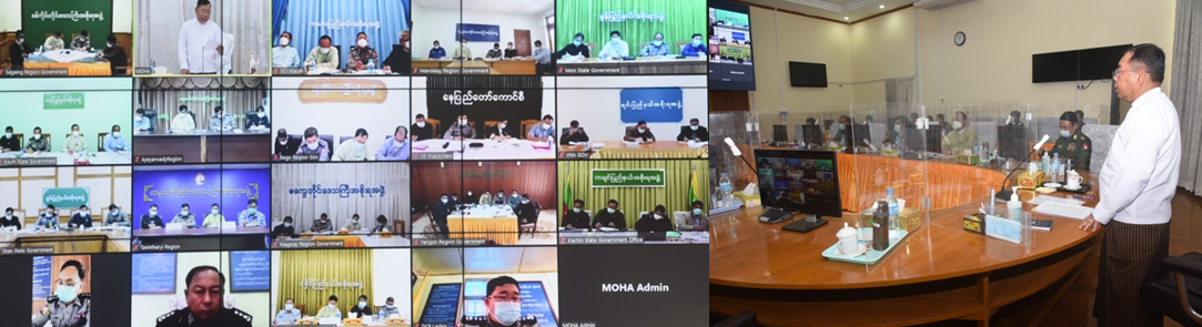 ဆက်လက်၍ ပြည်ထဲရေးဝန်ကြီးဌာန ဒုတိယဝန်ကြီး၊ ဥပဒေရေးရာဝန်ကြီးဌာန၊ မြန်မာနိုင်ငံရဲတပ်ဖွဲ့ဌာနချုပ်၊ အထွေထွေအုပ်ချုပ်ရေးဦးစီးဌာနနှင့် နေပြည်တော် စည်ပင်သာယာရေးကော်မတီမှ တက်ရောက်လာ ကြသူများက ဆက်လက်ဆောင်ရွက်မည့် လုပ်ငန်းစဉ်များနှင့် ပတ်သက်၍ ဆွေးနွေးခဲ့ကြပြီး တိုင်းဒေသကြီးနှင့် ပြည်နယ်များမှ တာဝန်ရှိသူများက ဗီဒီယိုကွန်ဖရင့်စနစ်ဖြင့် ဆွေးနွေးခဲ့ကြကြောင်း သိရသည်။