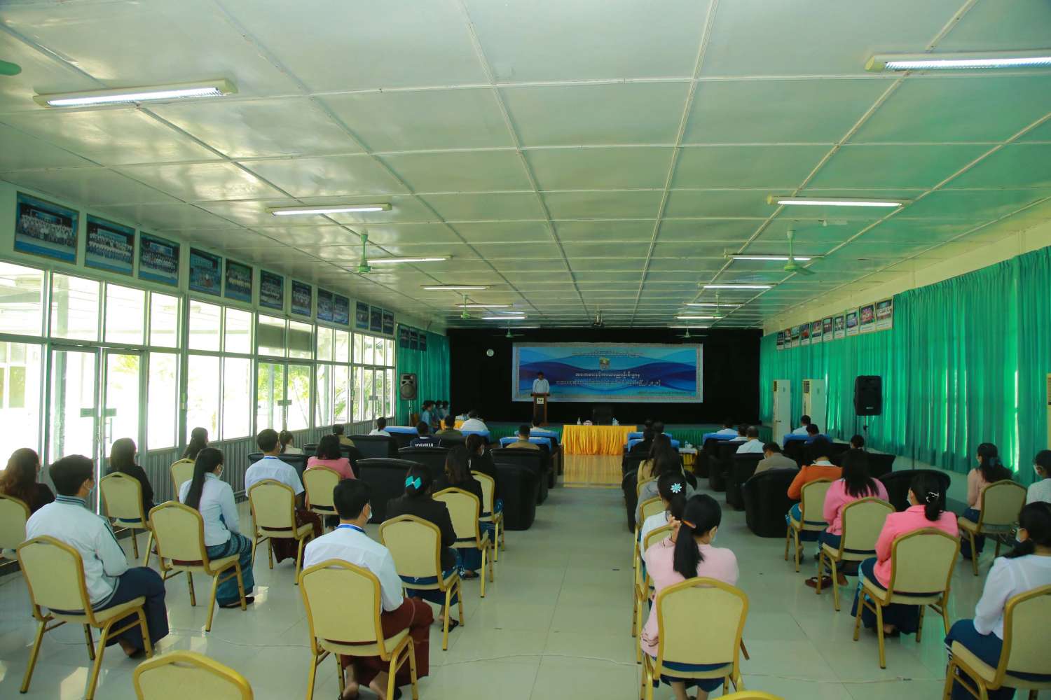 ဘဏ္ဍာရေးဆိုင်ရာ လုပ်ထုံးလုပ်နည်းသင်တန်း အမှတ်စဉ် (၂/၂၀၂၁) သင်တန်းဆင်းပွဲ အခမ်းအနားကို ယနေ့ နံနက် ၉ နာရီခွဲတွင် နေပြည်တော် အားကစားလေ့ကျင့်ရေးစခန်း (Gold Camp) ရှိ (Multipurpose Hall) ၌ ကိုဗစ်-၁၉ ထိန်းချုပ်/ ကာကွယ် စည်းမျဉ်း/ စည်းကမ်းများနှင့်အညီ ကျင်းပသည်။