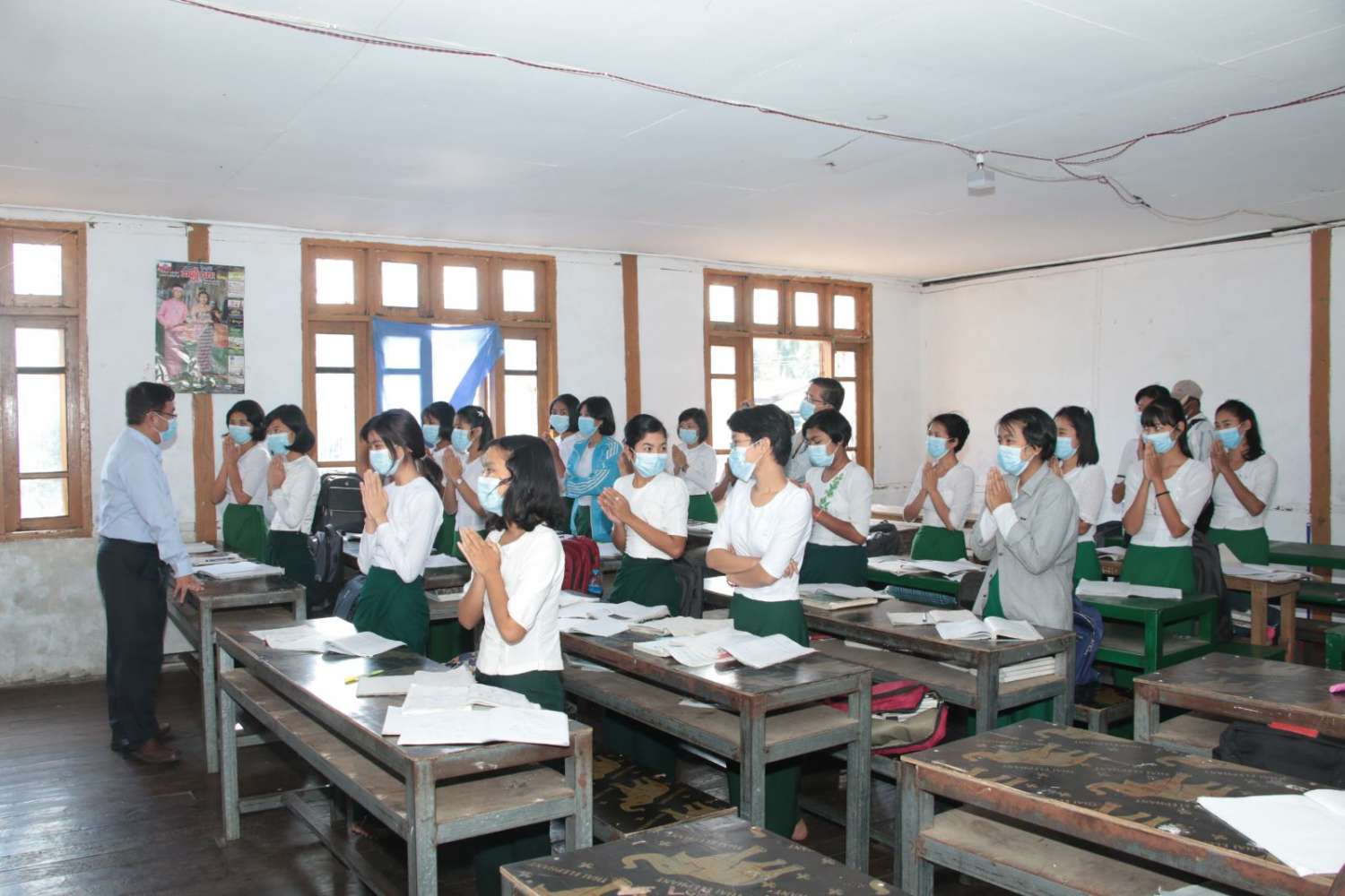 ပညာရေးဝန်ကြီးဌာန၊ ပြည်ထောင်စုဝန်ကြီး ဒေါက်တာညွန့်ဖေသည် ယနေ့မွန်းလွဲပိုင်းတွင် မာန်အောင်မြို့ အခြေခံပညာ အထက်တန်းကျောင်းခွဲ (ဈေးတန်း)သို့ ရောက်ရှိပြီး ကျောင်းအတွင်း လှည့်လည်ကြည့်ရှုစစ်ဆေး၍ လိုအပ်သည်များဖြည့်ဆည်း ဆောင်ရွက်ပေးကာ ကျောင်းသား ကျောင်းသူများ အေးချမ်းစွာပညာ သင်ကြားနေမှုကို လှည့်လည်ကြည့်ရှု အားပေးသည်။