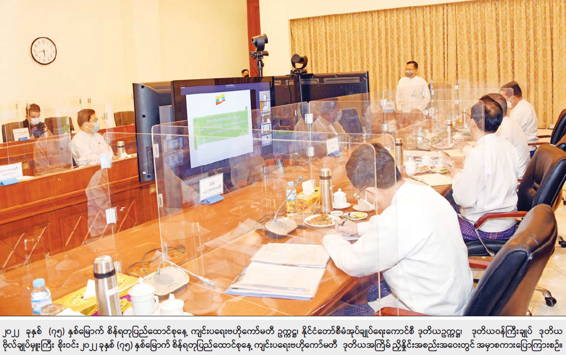 အစည်းအဝေးသို့ ဗဟိုကော်မတီဝင် ပြည်ထောင်စုဝန်ကြီးများ၊ စီမံခန့်ခွဲမှုကော်မတီဥက္ကဋ္ဌ နေပြည်တော်ကောင်စီဥက္ကဋ္ဌ၊ အမျိုးသားစည်းလုံးညီညွတ်ရေးနှင့် ငြိမ်းချမ်းရေးဖော်ဆောင်မှု ညှိနှိုင်းရေးကော်မတီ အတွင်းရေးမှူး၊ ဆပ်ကော်မတီ ဥက္ကဋ္ဌများ ဖြစ်ကြသည့် ဒုတိယဝန်ကြီးများနှင့် တာဝန်ရှိသူများ တက်ရောက်ကြပြီး ကျန်ဆပ်ကော်မတီဥက္ကဋ္ဌများနှင့် တာဝန်ရှိသူများက ဗီဒီယိုကွန်ဖရင့်ဖြင့် တက်ရောက်ကြသည်။