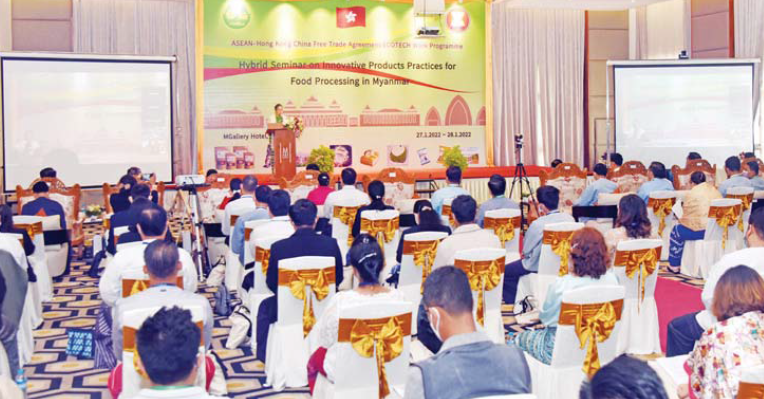 အာဆီယံ-ဟောင်ကောင်(တရုတ်)ဒေသတွင်းရှိ စားသောက်ကုန်လုပ်ငန်းများ ဖွံ့ဖြိုးတိုးတက်ရေးအတွက် နိုင်ငံပေါင်း ၁၁ နိုင်ငံမှ လုပ်ငန်းရှင်များ အချင်းချင်း ပူးပေါင်းဆောင်ရွက်မှု ကွန်ရက်တိုးချဲ့ရန်၊ မြန်မာလုပ်ငန်းရှင်များအနေဖြင့် စားသောက်ကုန် လုပ်ငန်းများနှင့်ပတ်သက်သည့် ဆန်းသစ်တီထွင်သည့် အသိပညာ၊ အတွေ့အကြုံများ၊ နိုင်ငံခြားရင်းနှီးမြှုပ်နှံမှု လုပ်ငန်းများနှင့် သွင်းကုန်လုပ်ငန်းများအပေါ်တွင် အခြေခံ၍ ပြောင်းလဲလုပ်ကိုင်နိုင်မည့် နည်းဗျူဟာများ ပိုမိုရရှိလာပြီး ပြည်တွင်း၊ ပြည်ပ ဈေးကွက်ဝင်ထုတ်ကုန်များ ထုတ်လုပ်နိုင်စေရန် ဆန်းသစ်သည့် အတွေးအခေါ်နှင့် ထုတ်လုပ်မှုဒီဇိုင်းပုံစံများ စနစ်တကျ တွေးခေါ်လုပ်ကိုင်တတ်စေရန် ရည်ရွယ်၍ စက်မှုဝန်ကြီးဌာန စက်မှုကြီးကြပ်ရေးနှင့် စစ်ဆေးရေးဦးစီးဌာနသည် အာဆီယံ-ဟောင်ကောင်(တရုတ်) လွတ်လပ်သော ကုန်သွယ်မှု ဒေသရန်ပုံငွေဖြင့် မြန်မာနိုင်ငံအတွင်းရှိ စားသောက် ကုန်ထုတ်လုပ်မှု လုပ်ငန်းများအတွက် ဆန်းသစ် တီထွင်မှုအလေ့အကျင့်ကောင်းများ မျှဝေခြင်း စီမံကိန်း “ Innovative Products Practices for Food processing in Myanmar” ကို ဆောင်ရွက်လျက်ရှိကြောင်း သိရသည်။