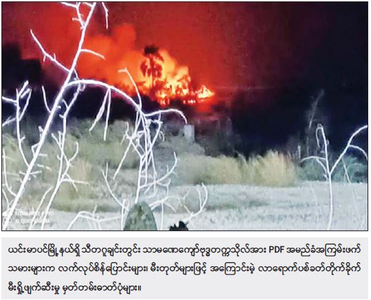 စစ်ကိုင်းတိုင်းဒေသကြီး၊ ယင်းမာပင်မြို့နယ်ရှိ သီတဂူချင်းတွင်းသာမဏေကျော် ဗုဒ္ဓတက္ကသိုလ် သို့ PDF အမည်ခံအကြမ်းဖက်သမားများ က လက်လုပ်စိန်ပြောင်းများ၊ မီးတုတ်များဖြင့် လာရောက်ပစ်ခတ်တိုက်ခိုက် မီးရှို့ဖျက်ဆီးခဲ့ကြောင်း သိရှိရသည်။