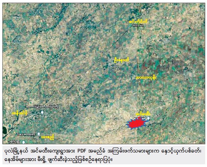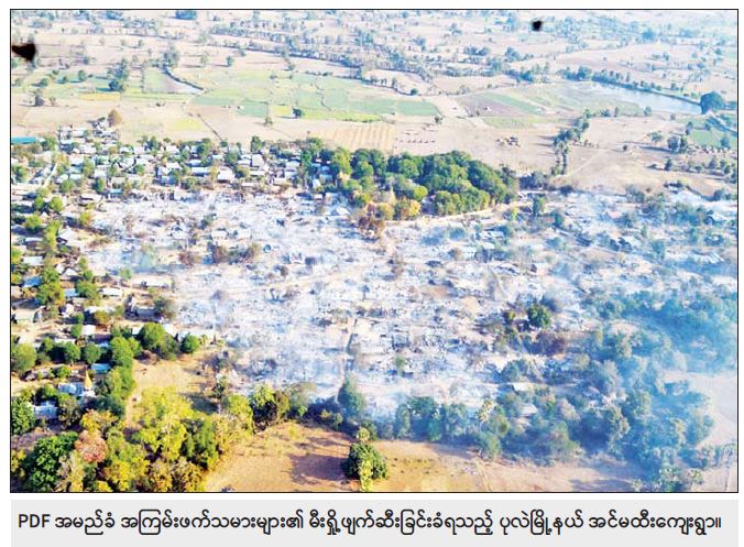 စစ်ကိုင်းတိုင်းဒေသကြီး၊ ပုလဲမြို့နယ်၊ အင်မထီးကျေးရွာရှိ ပြည်သူ့စစ်(ဌာနေ) တပ်ဖွဲ့ဝင်များ၏ စခန်းနှင့် ကျေးရွာအနီးတစ်ဝိုက်သို့ ဇန်နဝါရီလ ၃၀ ရက် ညနေပိုင်းတွင် PDF အမည်ခံ အကြမ်းဖက်သမားများက ရွာ၏တောင်ဘက်နှင့် အရှေ့တောင်ဘက်တို့မှ အင်အား အလုံးအရင်း ဖြင့် ချဉ်းကပ်လာရာမှ ပြည်သူ့စစ် (ဌာနေ) တပ်ဖွဲ့ဝင်များနှင့် အပြန်အလှန်ပစ်ခတ်မှုများ ဖြစ်ပွားခဲ့ပြီး အကြမ်းဖက်သမားများက ကျေးရွာနေအိမ် များအား မီးရှို့ဖျက်ဆီးကာ ထွက်ပြေးသွား ခဲ့ကြောင်း သိရှိရသည်။