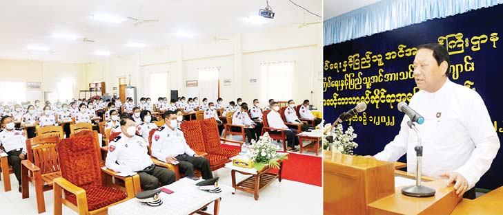 ရှေးဦးစွာ ပြည်ထောင်စုဝန်ကြီးက ယခု သင်တန်းသည် လူဝင်မှုကြီးကြပ်ရေးနှင့် ပြည်သူ့အင်အားသင်တန်းကျောင်းတွင် တတိယအကြိမ်  အဖြစ်ဖွင့်လှစ်သည့် အမှုထမ်းအဆင့် ဘာသာရပ်ဆိုင်ရာ သင်တန်းဖြစ်ပါကြောင်း၊ မိမိတို့ဝန်ကြီးဌာန အနေဖြင့် အဓိကလုပ်ငန်း တာဝန်ကြီး (၃) ရပ် ဖြစ်သည့် လူဝင်မှုကြီးကြပ်ရေးလုပ်ငန်း၊ အမျိုးသားမှတ်ပုံတင်ရေးနှင့် နိုင်ငံသားမှတ်ပုံတင်လုပ်ငန်း၊ ပြည်သူ့အင်အားစာရင်း ကောက်ယူ ထိန်းသိမ်းရေး လုပ်ငန်းတို့ကို နိုင်ငံတော်အစိုးရ၏ မူဝါဒလမ်းညွှန် ချက်များနှင့်အညီ အကောင်အထည်ဖော်ဆောင်ရွက် လျက်ရှိပါကြောင်း၊ ထို့ပြင် e-ID စနစ် လုပ်ငန်း အကောင်အထည်ဖော်ရေး လုပ်ငန်းကိုလည်း ကြိုးပမ်းဆောင်ရွက်လျက်ရှိပါကြောင်း၊ ယင်းလုပ်ငန်း တာဝန်များ သည် ပြည်သူနှင့် တိုက်ရိုက်ထိတွေ့ ဆက်ဆံဆောင်ရွက်ရသည့် လုပ်ငန်းများဖြစ်ပြီး သတ်မှတ်ပြဋ္ဌာန်းထားသည့် ဥပဒေ၊ လုပ်ထုံး လုပ်နည်းများနှင့်အညီ ဆောင်ရွက်ရခြင်းဖြစ်ကြောင်း။