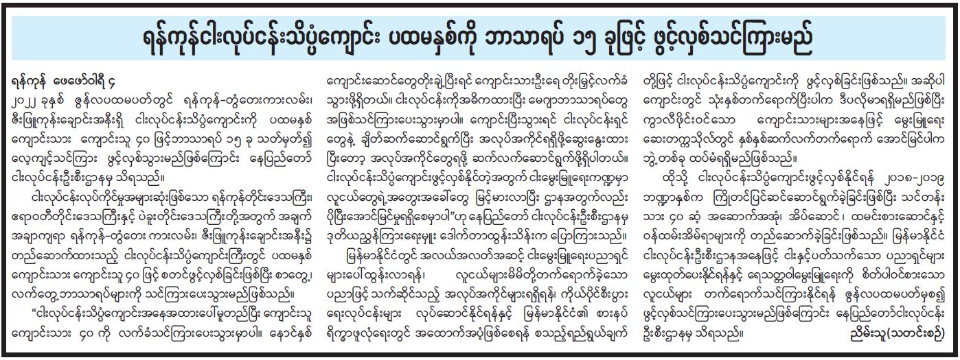 ရန်ကုန်ငါးဖမ်းလုပ်ငန်းသိပ္ပံကျောင်း ပထမနှစ်ကို ဘာသာရပ် ၁၅ ခုဖြင့် ဖွင့်လှစ်သင်ကြားမည် 02/05/2022 ရန်ကုန်ငါးဖမ်းလုပ်ငန်းသိပ္ပံကျောင်း ပထမနှစ်ကို ဘာသာရပ် ၁၅ ခုဖြင့် ဖွင့်လှစ်သင်ကြားမည်