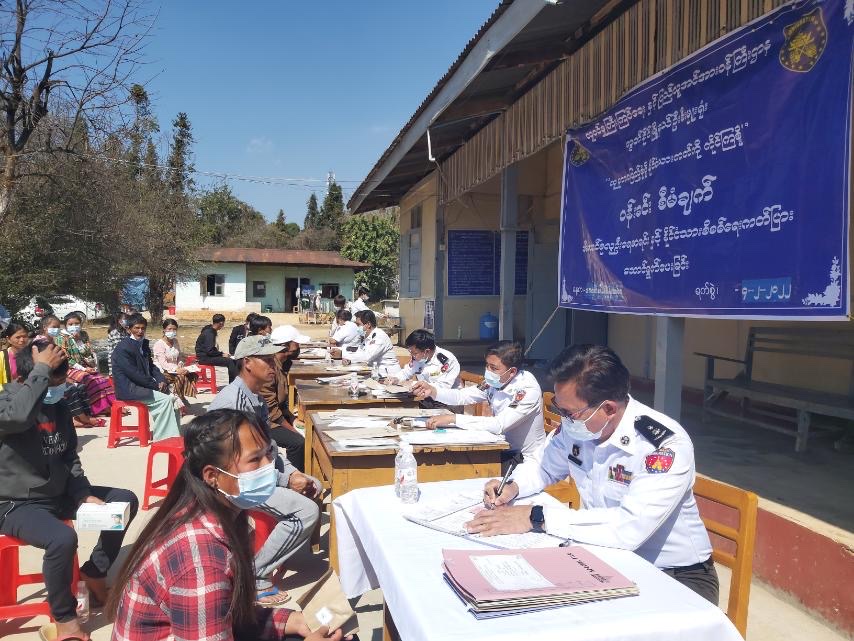 ရှမ်းပြည်နယ်(မြောက်ပိုင်း)၊ မူဆယ်ခရိုင်၊ ကွတ်ခိုင်မြို့နယ်အတွင်းပါဝင်သော ကျေးရွာအုပ်စု အချို့သည် ဒေသအခြေအနေအရ သွားလာရန် ခက်ခဲသော်လည်း ထိုဒေသရှိပြည်သူများကို ပန်းခင်း စီမံချက်ဖြင့် ဆောင်ရွက်လျက်ရှိသော နိုင်ငံသားတိုင်း ကတ်ပြားတစ်မျိုးမျိုး လက်ဝယ်ရရှိ ကိုင်ဆောင်နိုင်ရေးအတွက် နိုင်ငံသားကတ်ပြားများကို နေ့ချင်းပြီး ပြုလုပ်ပေးခြင်းကို ယမန်နေ့ နံနက်ပိုင်းက ကွတ်ခိုင်မြို့နယ် ဦးစီးဌာနရုံးတွင် ဆောင်ရွက်ပေးသည်။