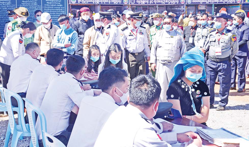 ယင်းနောက် နိုင်ငံတော်စီမံအုပ်ချုပ်ရေး ကောင်စီ အဖွဲ့ဝင်များနှင့် ပြည်ထောင်စုဝန်ကြီးများ၊ ပြည်နယ်ဝန်ကြီးချုပ်နှင့် တာဝန်ရှိသူများသည် စိုက်ပျိုးရေး ဦးစီးဌာနမှ ပြသထားသော ပြခန်းများနှင့် လူဝင်မှု ကြီးကြပ်ရေးနှင့် ပြည်သူ့အင်အားဝန်ကြီးဌာနမှ နိုင်ငံသားစိစစ်ရေး ကတ်ပြားများ ဆောင်ရွက်ပေးနေမှုကို လှည့်လည်ကြည့်ရှုကြကြောင်း သိရသည်။