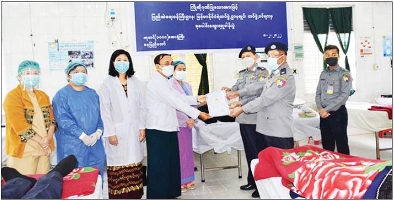 (၇၅)နှစ်မြောက် စိန်ရတု ပြည်ထောင်စုနေ့ကို ကြိုဆိုဂုဏ်ပြုသောအားဖြင့် မြန်မာနိုင်ငံရဲတပ်ဖွဲ့ဝင်များ နေပြည်တော် (ခုတင်-၁၀၀၀) ပြည်သူ့ဆေးရုံကြီး၌ စုပေါင်းသွေးလှူဒါန်း