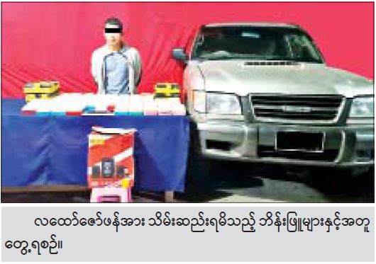 မူးယစ်ဆေးဝါးတားဆီးနှိမ်နင်း ရေးရဲတပ်ဖွဲ့ဝင်များ ပါဝင်သော ပူးပေါင်းအဖွဲ့သည် ဖေဖော်ဝါရီ ၆ ရက် ည ၇ နာရီခွဲတွင် မြစ်ကြီးနားမြို့ တပ်ကုန်းရပ်ကွက် ဆွတ်ဂျက်လမ်းတွင် လထော်ဇော်ဖန် မောင်းနှင်လာသည့် ISUZU အမျိုးအစားယာဉ်ကို ရပ်တန့်စစ်ဆေးရှာဖွေရာ ဘိန်းဖြူ ၁ ဒသမ ၁ ကီလိုကို လည်းကောင်း၊ အလားတူ ဖေဖော်ဝါရီ ၇ ရက် မွန်းလွဲ ၃ နာရီ တွင် မူးယစ်ဆေးဝါးတားဆီး နှိမ်နင်းရေးရဲတပ်ဖွဲ့ဝင်များ ပါဝင်သော ပူးပေါင်းအဖွဲ့သည် တာမွေမြို့နယ် နတ်ချောင်းရပ်ကွက် သမိန်ဗရမ်းလမ်းတွင် ဇော်မိုးနှင့် ဇော်ဝင်းထွန်း(ခ) ဆံရှည်တို့ကို မသင်္ကာဖွယ် တွေ့ရှိသဖြင့် စစ်ဆေးရှာဖွေရာ ၎င်းတို့နှစ်ဦးထံမှ စိတ်ကြွရူးသွပ်ဆေးပြား ၁၀၁၀ ကို လည်းကောင်း ဖမ်းဆီးရမိခဲ့ သဖြင့် ၎င်းတို့အား မူးယစ်ဆေးဝါးနှင့် စိတ်ကိုပြောင်းလဲစေသော ဆေးဝါးများဆိုင်ရာ ဥပဒေအရ အရေးယူထားကြောင်း သိရသည်။