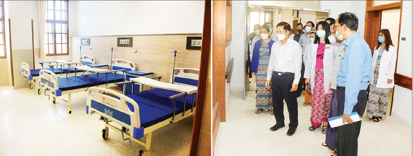 ယင်းနောက် နိုင်ငံတော်စီမံအုပ်ချုပ်ရေးကောင်စီဥက္ကဋ္ဌ နိုင်ငံတော်ဝန်ကြီးချုပ်သည် ဆေးရုံသစ် ကြီးအတွင်း လှည့်လည်ကြည့်ရှုစစ်ဆေးပြီး တာဝန်ရှိသူများ၏ တင်ပြချက်များအပေါ် လိုအပ်သည်များ မှာကြားဖြည့်ဆည်း ဆောင်ရွက်ပေးခဲ့ကြောင်း သတင်းရရှိသည်။