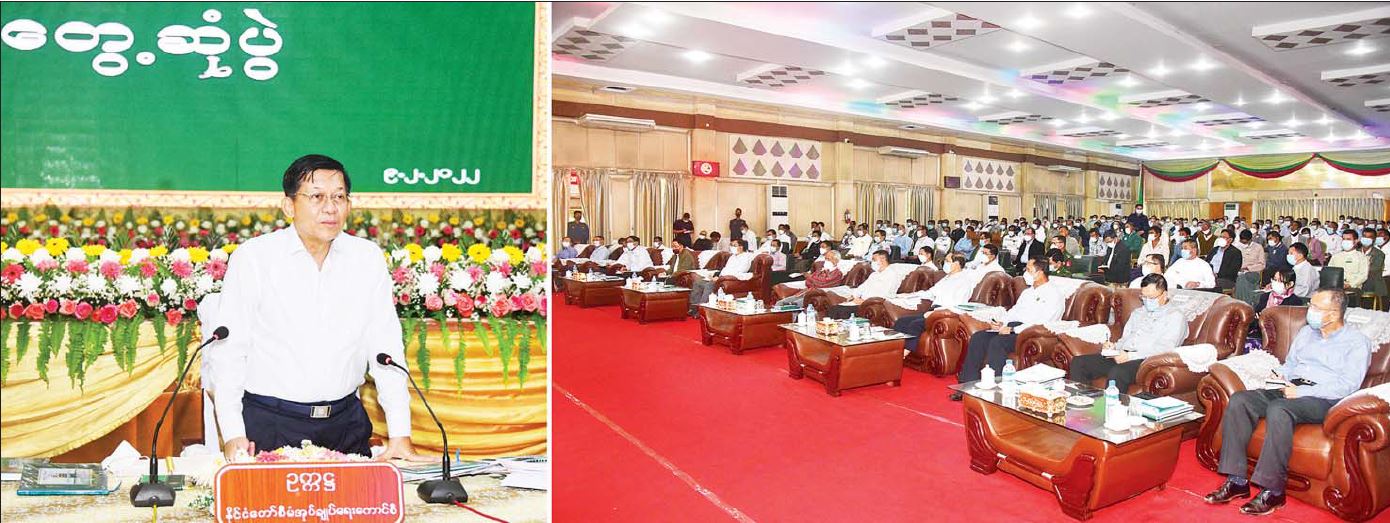ဦးစွာ တိုင်းဒေသကြီးဝန်ကြီးချုပ် ဦးတင့်လွင်က ဒေသဆိုင်ရာအချက်အလက် များ၊ဒေသတွင်း စိုက်ပျိုးမွေးမြူရေးလုပ်ငန်းများဆောင်ရွက်၍ ထုတ်ကုန်များ ထုတ်လုပ်နိုင်မှုအခြေအနေများ၊ စားသုံးဆီထုတ်လုပ်မှုနှင့်ဖူလုံမှု အခြေအနေများ၊ စိုက်ပျိုးမွေးမြူရေး အထောက်အကူပြု နေရောင်ခြည်စွမ်းအင်သုံး လျှပ်စစ်မီးထုတ်လုပ်ရေးလုပ်ငန်းများ အကောင်အထည်ဖော် ဆောင်ရွက်နေမှုအခြေအနေများ၊ ဝါသီးနှံများအထွက် တိုးရေး ကြိုးပမ်းဆောင်ရွက်နေမှု အခြေအနေများ၊ အိမ်တွင်းစက်မှုလက်မှုလုပ်ငန်းများ ဆောင်ရွက်နေမှုအခြေအနေများ၊ လျှပ်စစ်မီးမရရှိ သေးသည့် ကျေးရွာများလျှပ်စစ်မီး ရရှိရေးဆောင်ရွက်ပေးနေမှုအခြေအနေများ၊ ပညာသင်ကြား ရေးပညာရေးဝန်ထမ်းများနှင့် ဌာနဆိုင်ရာ ဝန်ထမ်းများ ရာနှုန်းပြည့်နီးပါး တာဝန်ထမ်းဆောင် နေမှု အခြေအနေများ၊ ကျောင်းသား၊ ကျောင်းသူများ ပညာသင်ကြားနေမှုအခြေအနေများ၊ ပြည်သူ များအား ကျန်းမာရေးစောင့်ရှောက်မှုလုပ်ငန်းများ ဆောင်ရွက်ပေးနေမှုအခြေအနေများ၊ ကိုဗစ်-၁၉ ရောဂါကာကွယ်ဆေးထိုးခြင်း လုပ်ငန်းများ ဆောင်ရွက်ပေးနေမှု အခြေအနေများနှင့် ကုသရေးလုပ်ငန်းများအတွက် ကြိုတင်ပြင်ဆင်ထားရှိမှုအခြေ အနေများ၊ နိုင်ငံသားစိစစ် ရေးကတ်များရရှိရေး ဆောင်ရွက်နေမှုအခြေအနေများ၊ အားကစားကဏ္ဍဖွံ့ဖြိုးတိုးတက်ရေး ဆောင်ရွက်နေမှုအခြေအနေများ၊ သောက်သုံးရေ ဖူလုံမှုရှိစေရေးဆောင်ရွက်နေမှုအခြေအနေများ၊ တိုင်းဒေသကြီး ဖွံ့ဖြိုးတိုးတက်ရေးအတွက် ဆောင်ရွက်နေမှုအခြေအနေများနှင့် ရှေ့ဆက် ဆောင်ရွက်သွားမည့် အခြေအနေများအား ရှင်းလင်းတင်ပြသည်။