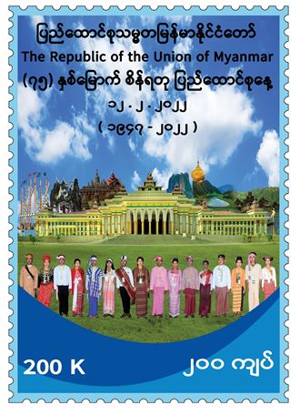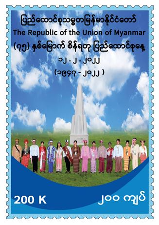 ပို့ဆောင်ရေးနှင့်ဆက်သွယ်ရေးဝန်ကြီးဌာန၊ မြန်မာ့စာတိုက်လုပ်ငန်းမှ (၇၅)နှစ်မြောက် စိန်ရတုပြည်ထောင်စုနေ့အထိမ်းအမှတ် အထူးထုတ် စာပို့တံဆိပ် ခေါင်းသစ် (၂၀၀/- ကျပ်တန်) (၃)မျိုးအား ၂၀၂၂ ခုနှစ်၊ ဖေဖော်ဝါရီ (၁၂)ရက်၊ မြန်မာသက္ကရာဇ် ၁၃၈၃ ခုနှစ်၊ တပို့တွဲလဆန်း (၁၂)ရက် (စနေနေ့)၊ နံနက် ၉ နာရီမှစတင်၍ နေပြည်တော် ဗဟိုစာတိုက်ကြီး၊ ရန်ကုန်စာတိုက်ကြီး၊ မန္တလေးစာတိုက်ကြီးတို့နှင့် တိုင်းဒေသကြီး/ ပြည်နယ်များရှိ စာတိုက်ကြီးများတွင် ရောင်းချပေးသွားမည် ဖြစ်သည်။