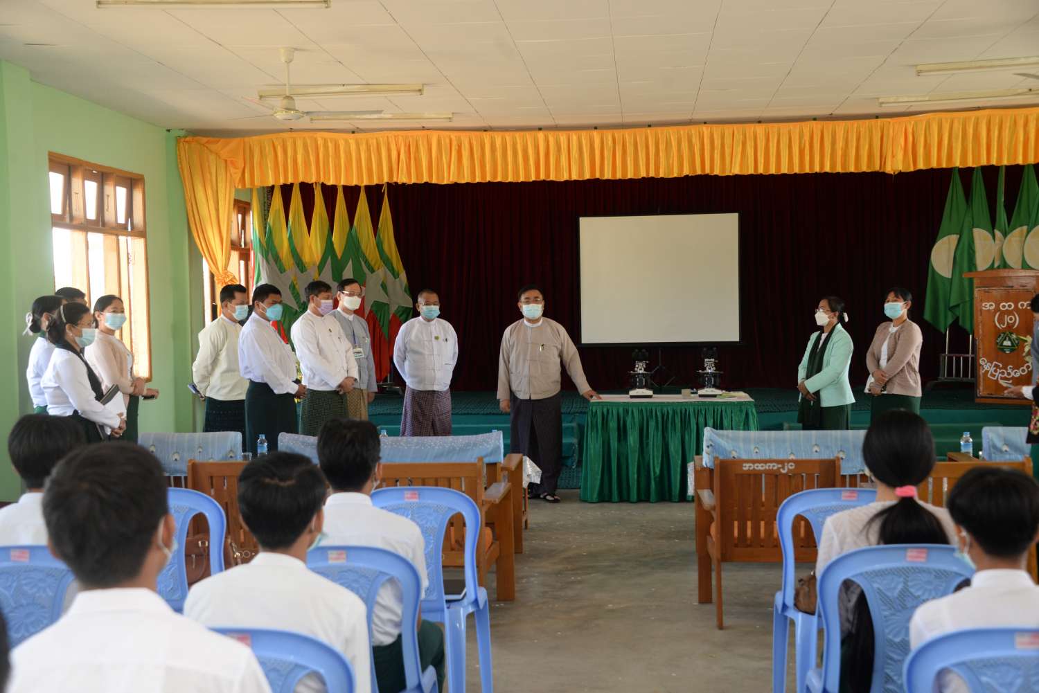 ယင်းနောက် ပြည်ထောင်စုဝန်ကြီးက ကျောင်းအုပ်ကြီးနှင့်ကျောင်းအကျိုးတော်ဆောင်များ၊ ဆရာဆရာမများနှင့် ကျောင်းသားကျောင်းသူများနှင့်တွေ့ဆုံ၍ ပညာရေးဝန်ကြီးဌာနအနေဖြင့် ကျောင်းများအတွက် အရည်အသွေးပြည့်မီသော သင်ထောက်ကူပစ္စည်းများ ဆက်လက်ဖြည့်ဆည်းပေးနိုင်ရေး စီစဉ်ဆောင်ရွက်လျက်ရှိပါကြောင်း၊ ကျောင်းသား ကျောင်းသူများ အနေဖြင့် သိပ္ပံဘာသာရပ်များ စာတွေ့လက်တွေ့ သင်ကြားရာတွင် အရည်အသွေးရှိသော သင်ထောက်ကူပစ္စည်းကို အသုံးပြုခြင်းဖြင့် ဘာသာရပ်ဆိုင်ရာသင်ခန်းစာများကို ပိုမိုနားလည် စေမည်ဖြစ်ပါကြောင်း၊ တန်ဖိုးကြီးသော သင်ထောက်ကူပစ္စည်းများကို တန်ဖိုးရှိစွာအသုံးချ သင်ကြားသင်ယူဆောင်ရွက်ကြစေ လိုပါကြောင်း၊ ဆရာဆရာမများအနေဖြင့် ကျောင်းသားကျောင်း သူများကို လက်တွေ့ခန်းသုံးပစ္စည်းများ ကျွမ်းကျင်စွာအသုံးပြုတတ်အောင် စေတနာထား သင်ကြား ပေးစေလိုပါကြောင်း၊ ကျောင်းသား ကျောင်းသူများအနေဖြင့် ကျန်းမာရေးဂရုစိုက်၍ ပညာကိုအမှန်တကယ်တတ်မြောက်ရန် ကြိုးစားသင်ယူစေလိုပါကြောင်း ပြောကြားသည်။