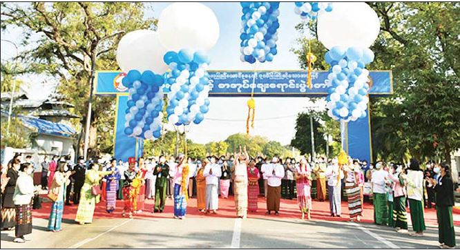 (၇၅)နှစ်မြောက် စိန်ရတု ပြည်ထောင်စုနေ့ အထိမ်း အမှတ် မန္တလေးတိုင်းဒေသကြီး စာအုပ်ပြပွဲနှင့် စာအုပ်ဈေးရောင်းပွဲတော် ဖွင့်ပွဲအခမ်းအနားကို ယမန်နေ့နံနက် ၉ နာရီက ချမ်းအေးသာစံမြို့နယ် ၇၁ လမ်း ၂၆လမ်းနှင့် ၂၇ လမ်းအကြား မင်္ဂလာမုခ်ဦး ၌ကျင်းပရာ တိုင်းဒေသကြီးဝန်ကြီးချုပ် ဦးမောင်ကို၊ တိုင်းဒေသကြီး ဝန်ကြီးများ၊ အလယ်ပိုင်းတိုင်းစစ်ဌာနချုပ် ဒုတိယတိုင်းမှူး၊ ဌာနဆိုင်ရာများ၊ ဘင်ခရာ တပ်ဖွဲ့ဝင်များနှင့် စာပေဝါသနာရှင်များ တက်ရောက်ကြသည်။
