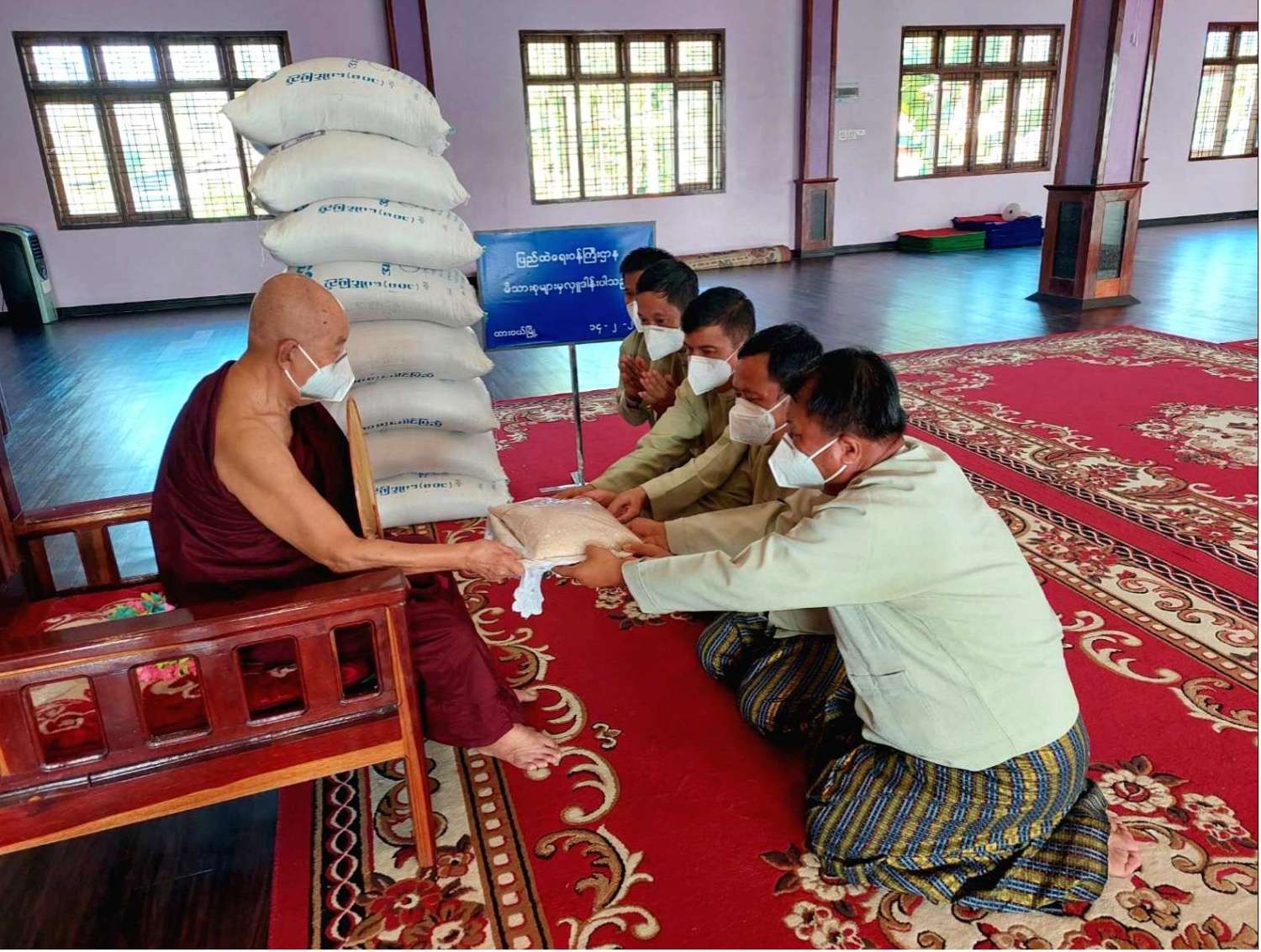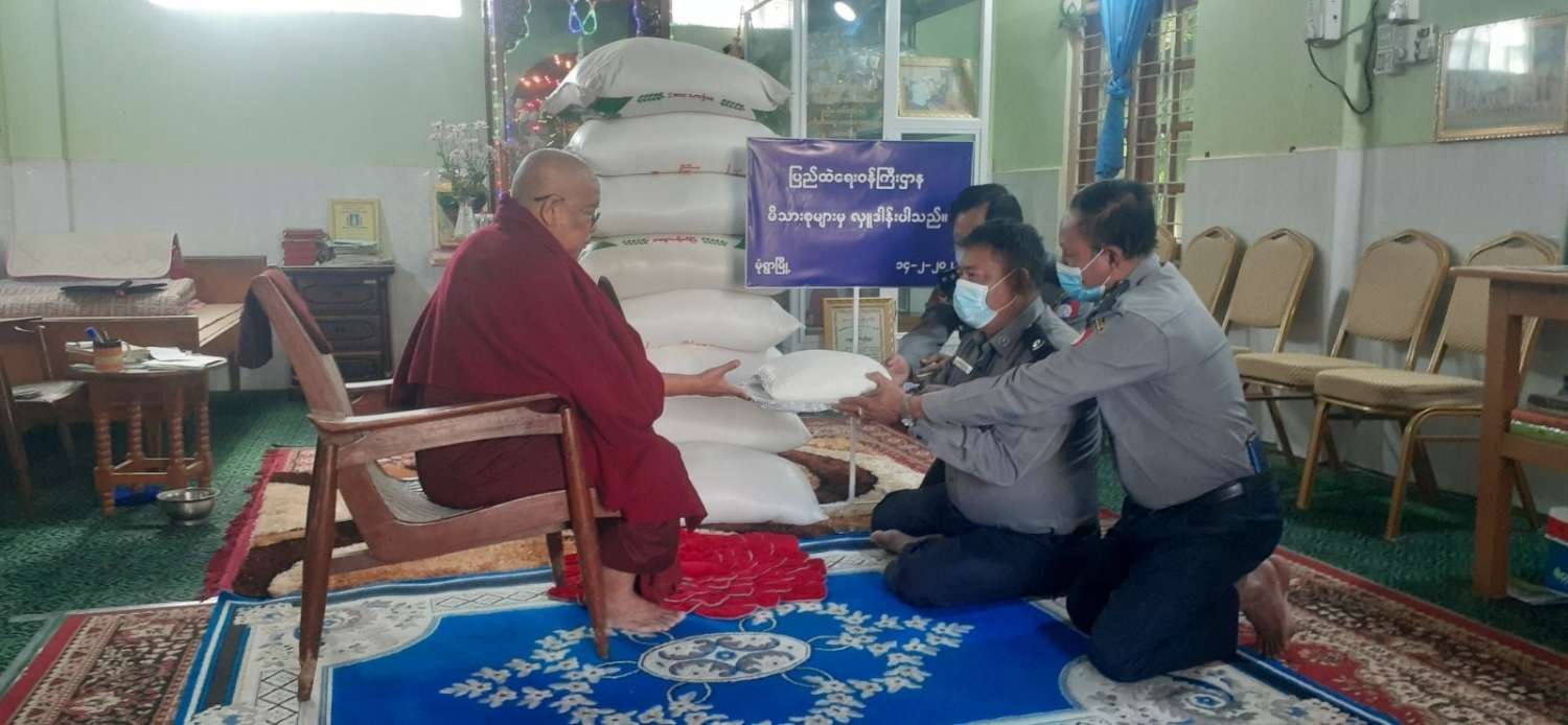 ပြည်ထဲရေးဝန်ကြီးဌာန၊ တပ်ဖွဲ့ဝင်/ဝန်ထမ်း အရာထမ်း၊ အမှုထမ်းမိသားစုများက မြို့နယ်အသီးသီးရှိ ဘုန်းတော်ကြီးကျောင်းများသို့ ဆွမ်းဆန်တော်များ ဆက်ကပ်လှူဒါန်းခြင်းကို ဆောင်ရွက်လျက်ရှိသည်။