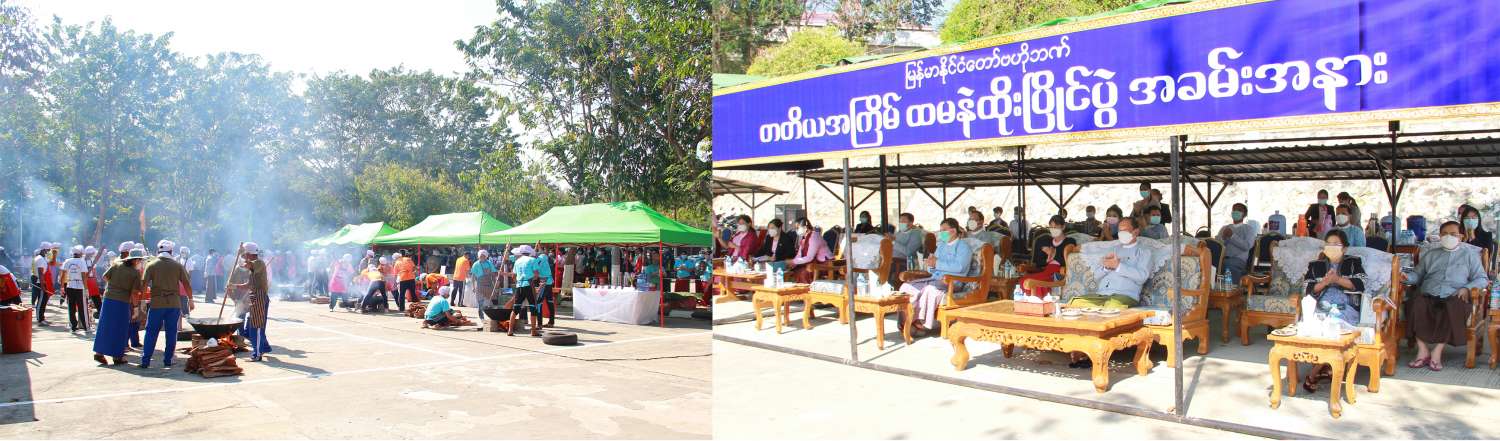 မြန်မာနိုင်ငံတော်ဗဟိုဘဏ်၏ တတိယအကြိမ် မြန်မာ့ရိုးရာထမနဲထိုးပြိုင်ပွဲ အခမ်းအနားကို ယနေ့ နံနက်ပိုင်းတွင် မြန်မာနိုင်ငံတော်ဗဟိုဘဏ် (နေပြည်တော်)၌ ကျန်းမာရေးဝန်ကြီးဌာနမှ ထုတ်ပြန်ထားသည့် ကိုဗစ်-၁၉ စည်းကမ်းချက်များနှင့်အညီ ကျင်းပသည်။