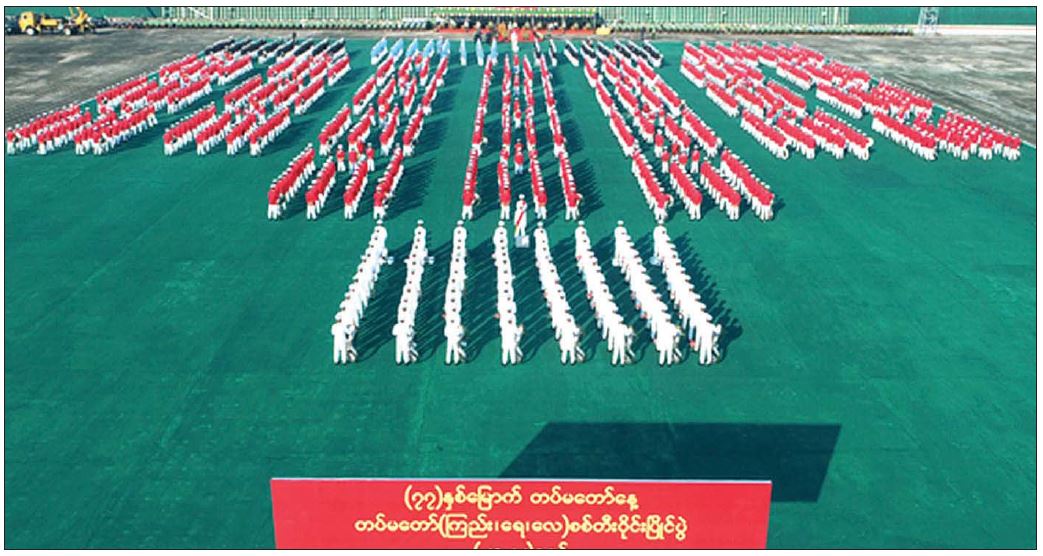 ထို့နောက် တပ်မတော်ဂုဏ်ပြု စစ်တီးဝိုင်းအဖွဲ့က သရုပ်ပြတီးခတ်ဖျော်ဖြေကြပြီး ညှိနှိုင်းကွပ်ကဲရေးမှူး (ကြည်း၊ ရေ၊ လေ) ဗိုလ်ချုပ်ကြီး မောင်မောင်အေးက ဂုဏ်ပြုဆုငွေများ ပေးအပ်ချီးမြှင့်သည်။