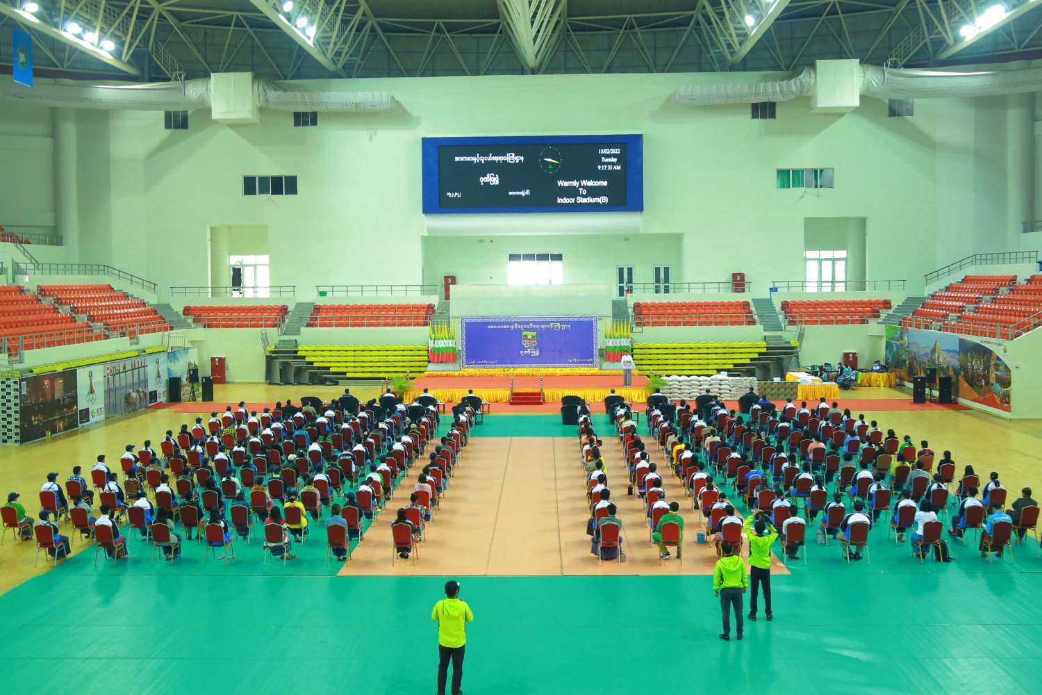 (၇၅)နှစ်မြောက် စိန်ရတုပြည်ထောင်စုနေ့ အခမ်းအနားတွင် ကျရာကဏ္ဍမှပါဝင်ကူညီ ဆောင်ရွက်ခဲ့သည့် ဝန်ထမ်းများကို ဂုဏ်ပြုချီးမြှင့်ခြင်း အခမ်းအနားကို ယနေ့နံနက် ၉ နာရီတွင် နေပြည်တော်ဝဏ္ဏသိဒ္ဓိအားကစားရုံ (B)၌ ကိုဗစ်-၁၉ ရောဂါ စည်းမျဉ်း/စည်းကမ်းများနှင့်အညီ ကျင်းပသည်။