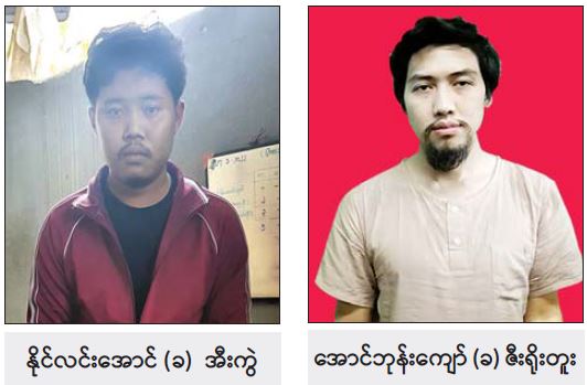 ရန်ကုန်တိုင်းဒေသကြီး မင်္ဂလာဒုံမြို့နယ် အောင်မင်္ဂလာကားဝန်းနေ နိုင်လင်းအောင်(ခ) အီးကွဲ(ခ) ဒဗလျူ (ဘ)ဦးအောင်ဆန်းဝင်းသည် အကြမ်းဖက်မှု တိုက်ဖျက်ရေးဗဟိုအဖွဲ့၏ အမိန့်ကြော်ငြာစာ အမှတ်(၂/၂၀၂၁)ဖြင့် အကြမ်းဖက် အုပ်စုများအဖြစ် သတ်မှတ်ကြေညာထားသည့် အဖွဲ့အစည်းများနှင့် ဆက်သွယ်ခြင်း၊ ငွေကြေးကောက်ခံ ထောက်ပံ့ခြင်း၊ တိုင်းရင်းသားလက်နက်ကိုင် အဖွဲ့နယ်မြေအတွင်း အကြမ်းဖက်သင်တန်း တက်ရောက်ခြင်း၊ လက်နက်၊ ခဲယမ်းများနှင့် လက်လုပ်ဗုံးများ သယ်ဆောင်ပေးခြင်းဖြင့် အကြမ်းဖက်ဗုံးခွဲတိုက်ခိုက်မှုဆိုင်ရာ ပြစ်မှုကို ကျူးလွန်ခဲ့ခြင်းအတွက်ကြောင့် လည်းကောင်း၊ မွန်ပြည်နယ် သံဖြူဇရပ်မြို့နယ် အမှတ်(၂)သိင်္ဂီလမ်း ကျောင်းပိုင်းရပ်ကွက်နေ အောင်ဘုန်းကျော် (ခ) ဇီးရိုးတူး (ဘ) ဦးရန်လင်းအောင်သည် တိုင်းရင်းသားလက်နက်ကိုင် အဖွဲ့နယ်မြေအတွင်း အကြမ်းဖက်သင်တန်း တက်ရောက်ခြင်း၊ အကြမ်းဖက်မှုတိုက်ဖျက်ရေး ဗဟိုအဖွဲ့၏ အမိန့်ကြော်ငြာစာအမှတ်(၂/၂၀၂၁)ဖြင့် အကြမ်းဖက်အုပ်စုများအဖြစ် သတ်မှတ်ကြေညာထားသည့် အဖွဲ့အစည်းများနှင့် ဆက်သွယ်ခြင်း၊ ငွေကြေးထောက်ပံ့မှုများ လက်ခံရယူခြင်းနှင့် ချုံခိုတိုက်ခိုက်ရာတွင် ပါဝင်ခဲ့ခြင်းဖြင့် အများပြည်သူ၏ လုံခြုံရေးကိုဖြစ်စေ၊ အသက်အိုးအိမ် စည်းစိမ်ကိုဖြစ်စေ၊ အများပြည်သူ (သို့မဟုတ်) တစ်ဦးတစ်ယောက်အတွက် အရေးကြီးသော အခြေခံအဆောက်အဦများကိုဖြစ်စေ၊ နိုင်ငံပိုင် အဆောက်အဦကိုဖြစ်စေ ပြင်းထန်စွာ ထိခိုက်ဆုံးရှုံးစေရန် ပြလုပ်ခဲ့ခြင်းကြောင့် လည်းကောင်း စစ်အုပ်ချုပ်ရေး(Martial Law) စစ်ခုံရုံးဖွဲ့၍ စစ်ဆေးမှုများ ဆောင်ရွက်ခဲ့ရာ အကြမ်းဖက်မှုတိုက်ဖျက်ရေး ဥပဒေပုဒ်မ ၅၀(ဈ)နှင့် ၅၀(က) တို့အရ ၂၀၂၂ ခုနှစ်၊ ဖေဖော်ဝါရီ ၁၅ ရက်တွင်၎င်းတို့အား “ထောင်ဒဏ် တစ်သက် ” ပြစ်ဒဏ် အမိန့်ချ မှတ်လိုက်ကြောင်း သိရသည်။