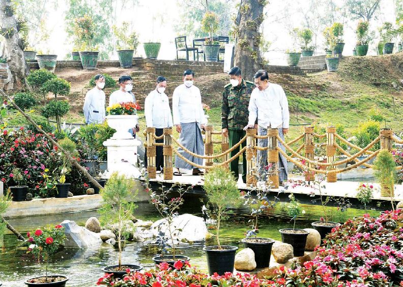 ထို့နောက် နိုင်ငံတော်စီမံအုပ်ချုပ်ရေးကောင်စီဥက္ကဋ္ဌ နိုင်ငံတော် ဝန်ကြီးချုပ်နှင့် အဖွဲ့ဝင်များ သည် ကျိုင်းတုံမြို့၊ သစ်တစ်ပင်တောင် အပန်းဖြေဥယျာဉ်သို့ရောက်ရှိကြပြီး အလောင်းမင်း တရားကြီးလက်ထက် ၁၇၅၃ ခုနှစ်တွင် စိုက်ပျိုးခဲ့သည့် ကညင်ဖြူပင်ကြီးနှင့် ဥယျာဉ်အတွင်း သစ်ပင်ပန်းမန်များ စိုက်ပျိုးထားရှိမှုများကို လိုက်လံ ကြည့်ရှုလေ့လာကြသည်။ ယင်းနောက် တာဝန်ရှိသူများ၏ ရှင်းလင်းတင်ပြမှုများ အပေါ် သမိုင်းဝင်နေရာတစ်ခုဖြစ်သဖြင့် ရေရှည် တည်တံ့အောင် ထိန်းသိမ်းဆောင်ရွက် သွားရန်လိုအပ်သည့် အခြေအနေများနှင့် ခရီးသွား ပြည်သူများ စိတ်လက်ကြည်နူး ချမ်းသာစွာဖြင့် လေ့လာကြည်ရှုနိုင်ရေး ဆောင်ရွက် ထားရှိရန် လိုအပ်သည့်အခြေအနေများနှင့် ပတ်သက်၍ မှာကြားခဲ့ကြောင်း သတင်းရရှိသည်။