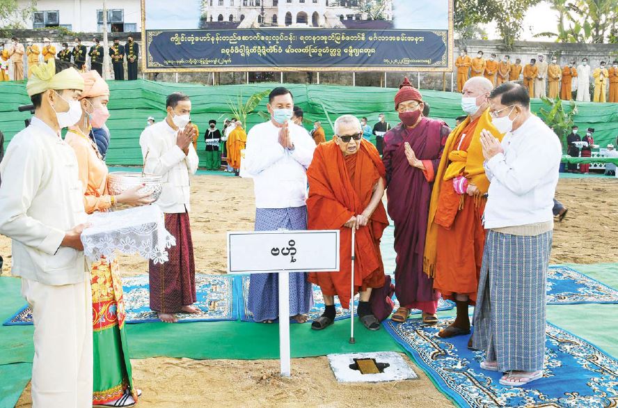 ထို့နောက် အခမ်းအနားကို စတင်ကျင်းပပြုလုပ်ရာ ကျိုင်းယင်းကျောင်းတိုက် ဆရာတော်ကြီး အမှူးပြုသည့် နိုင်ငံတော်စီမံအုပ်ချုပ်ရေးကောင်စီဥက္ကဋ္ဌ နိုင်ငံတော် ဝန်ကြီးချုပ်နှင့် အဖွဲ့ဝင်များသည် ရတနာအုတ်မြစ်တော်စီမည့် သက်ဆိုင်ရာနေရာ အသီးသီး၌ နေရာယူကြပြီး မင်္ဂလာအချိန်ရောက်ရှိသည်နှင့် တစ်ပြိုက်နက် ဗဟို၊ အရှေ့၊ အနောက်၊ တောင်၊ မြောက် တို့တွင် ရတနာအုတ်မြစ်တော်များကို စီသွင်းကြပြီး ပရိတ်နံ့သာရေများ ပက်ဖျန်းပေးကြသည်။ ယင်းနောက် အခမ်းအနားအောင်မြင်ခြင်း အထိမ်းအမှတ်အဖြစ် ရွှေမိုးငွေမိုးများ ရွာသွန်းဖြိုးကြသည်။