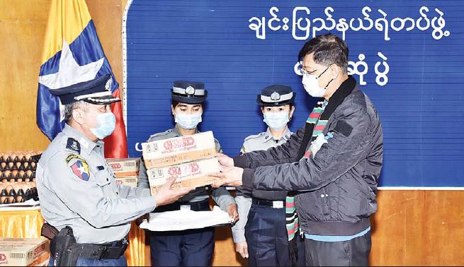 ယင်းနောက် နိုင်ငံတော်စီမံအုပ်ချုပ်ရေးကောင်စီအဖွဲ့ဝင် ကာကွယ်ရေးဝန်ကြီးဌာန၊ ပြည်ထောင်စု ဝန်ကြီး ဗိုလ်ချုပ်ကြီး မြထွန်းဦး၊ ဦးမောင်းဟာနှင့် အဖွဲ့ဝင်များ သည် ဟားခါးမြို့၊ ပြည်နယ်ရဲတပ်ဖွဲ့မှူးရုံးသို့ ရောက်ရှိပြီး ပြည်နယ်ရဲတပ်ဖွဲ့ဝင်များနှင့် တွေ့ဆုံကာ နယ်မြေဒေသတည်ငြိမ်အေးချမ်းရေးဆိုင်ရာ ကိစ္စများနှင့်ပတ်သက်၍ လိုအပ်သည်များ ဆွေးနွေးမှာကြားပြီးနောက် စားသောက်ဖွယ်ရာများ ထောက်ပံ့ပေး အပ်သည်။ ထိုမှတစ်ဆင့် ဟားခါးမြို့၊ တောင်တန်းသာသနာပြုဆရာတော် ဘဒ္ဒန္တ ဒေါက်တာ အရှင်တေဇောသာရ အား သွားရောက်ဖူးမြော်ကြည်ညိုပြီး လှူဖွယ်ပစ္စည်း များ၊ ဝတ္ထုငွေများ ဆက်ကပ်လှူဒါန်း ကြသည်။