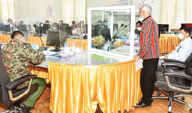 ချင်းပြည်နယ်၊ ဟားခါးမြို့၌ ရောက်ရှိနေသည့် နိုင်ငံတော်စီမံအုပ်ချုပ်ရေး ကောင်စီအဖွဲ့ဝင် ကာကွယ်ရေးဝန်ကြီးဌာန၊ ပြည်ထောင်စုဝန်ကြီး ဗိုလ်ချုပ်ကြီး မြထွန်းဦးနှင့် ဦးမောင်းဟာ တို့သည် ဖေဖော်ဝါရီ ၂၀ ရက် ညနေပိုင်းတွင် ဟားခါးမြို့ ပြည်နယ်အစိုးရအဖွဲ့ရုံး အစည်းအဝေးခန်းမ၌ ပြည်နယ်အစိုးရအဖွဲ့ဝင်များ ပြည်နယ်၊ ခရိုင်၊ မြို့နယ်အဆင့် ဌာနဆိုင်ရာတာဝန်ရှိသူများနှင့် တွေ့ဆုံသည်။
