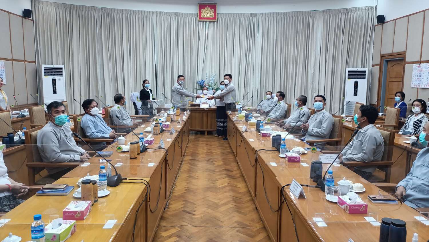 လမ်းဦးစီးဌာနမှ ဦးစီးအရာရှိ (မြို့ပြ) မွမ်းမံ Online အမှတ်စဉ် (၂/၂၀၂၂) သင်တန်းဆင်းပွဲ အခမ်းအနားကို ယနေ့နံနက် ၁၀ နာရီတွင် နေပြည်တော်၊ ဆောက်လုပ်ရေး ဝန်ကြီးဌာန၊ အစည်းအဝေးခန်းမဆောင်၌ ကိုဗစ်-၁၉ ညွှန်ကြားချက်များနှင့်အညီ ဗီဒီယိုကွန်ဖရင့်စနစ်ဖြင့် ကျင်းပသည်။