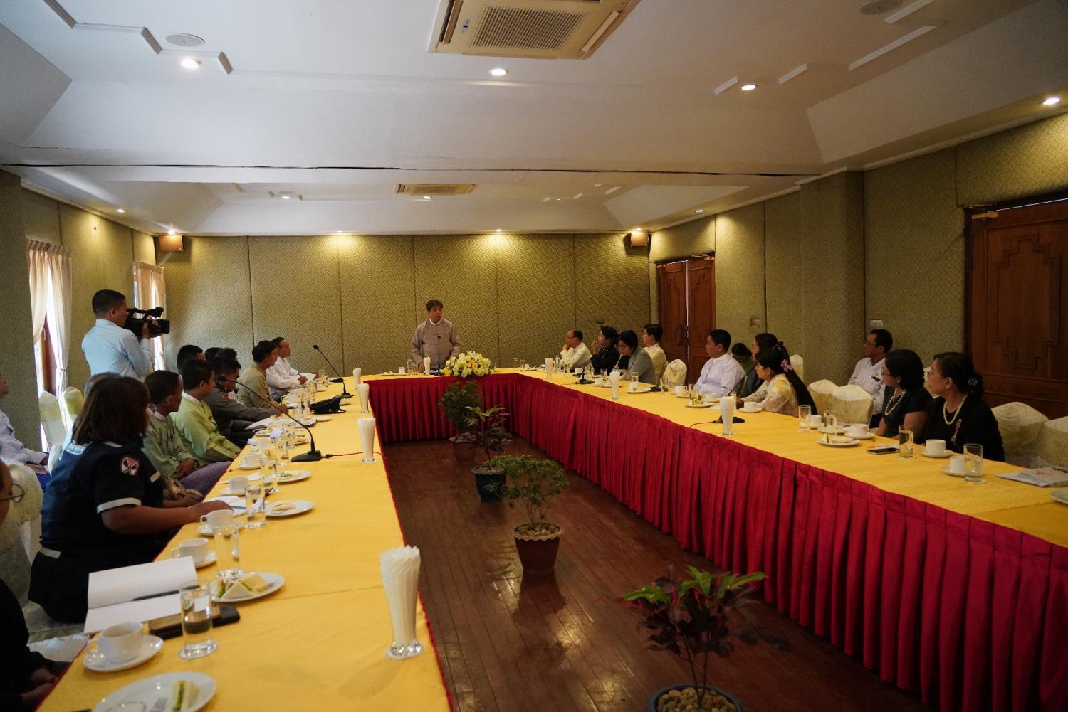 ဟိုတယ်နှင့်ခရီးသွားလာရေးဝန်ကြီးဌာန ဒုတိယဝန်ကြီးဦးတင်လတ်သည် ယနေ့နံနက် ပိုင်းတွင် ပဲခူးတိုင်းဒေသကြီး တောင်ငူမြို့ရှိ ဒေသခံဟိုတယ်နှင့် ခရီးသွား လုပ်ငန်းရှင်များနှင့် တောင်ငူခရိုင် Tourism Board အဖွဲ့ဝင်များအား တော်ဝင်ကေတုမတီဟိုတယ်၌ တွေ့ဆုံ သည်။