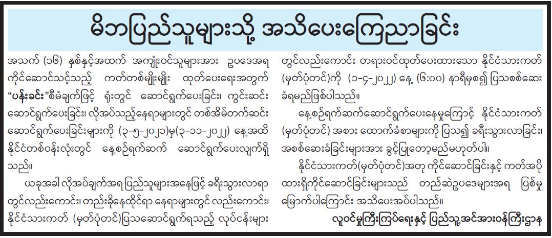 မိဘပြည်သူများသို့ အသိပေးပန်ကြားခြင်း