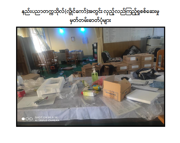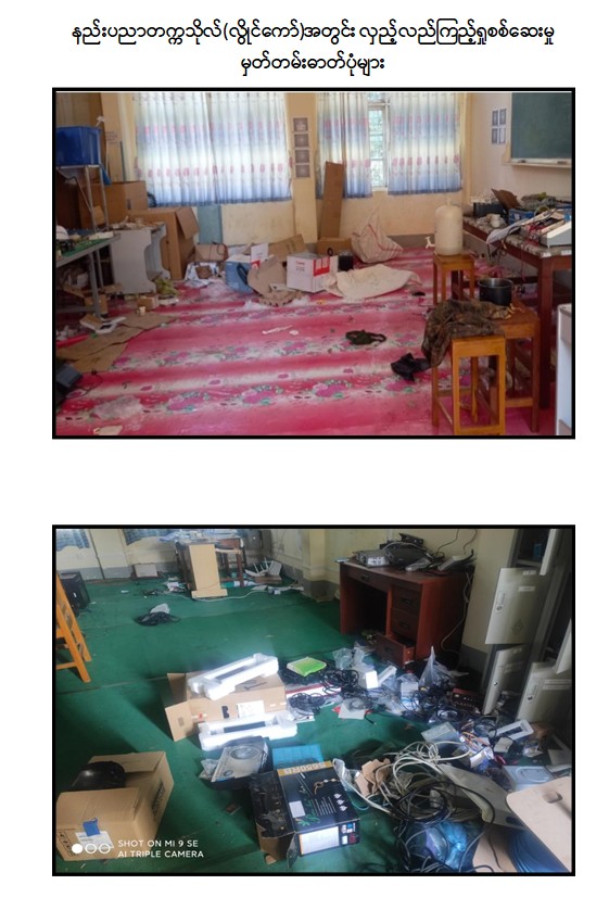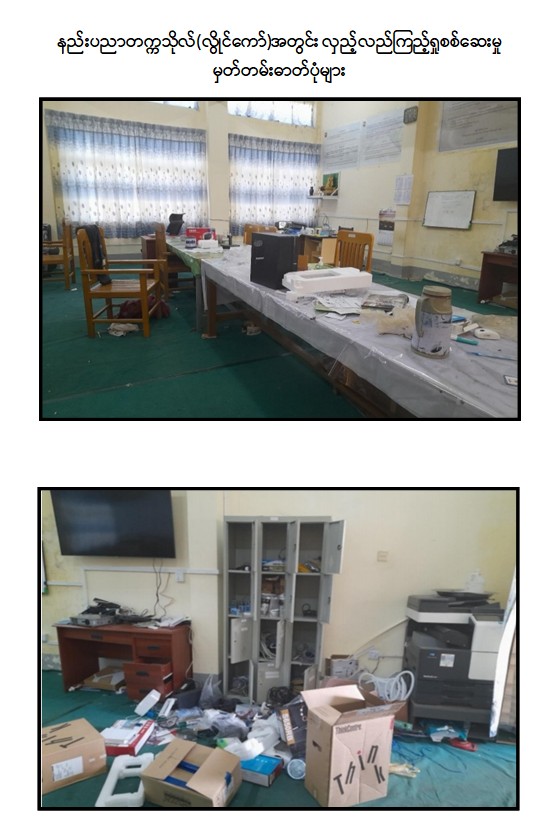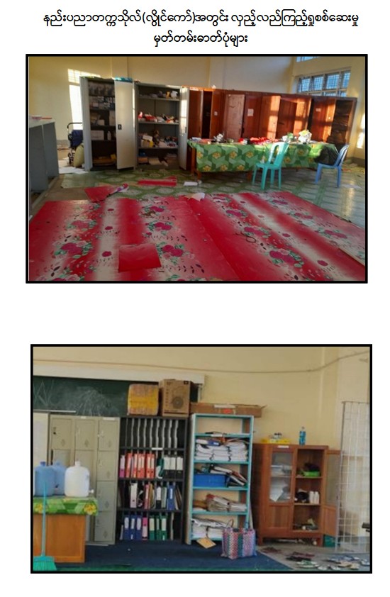 အဆိုပါပစ္စည်းများ ပျောက်ဆုံးပျက်စီးမှုနှင့်ပတ်သက်၍ မတ် ၇ ရက်တွင် လွိုင်ကော်မြို့မရဲစခန်း၌ ပြည်သူပိုင်ပစ္စည်း ကာကွယ်ရေးဥပဒေဖြင့် အမှုဖွင့်လှစ် ထားရှိကြောင်း သိရှိရသည်။