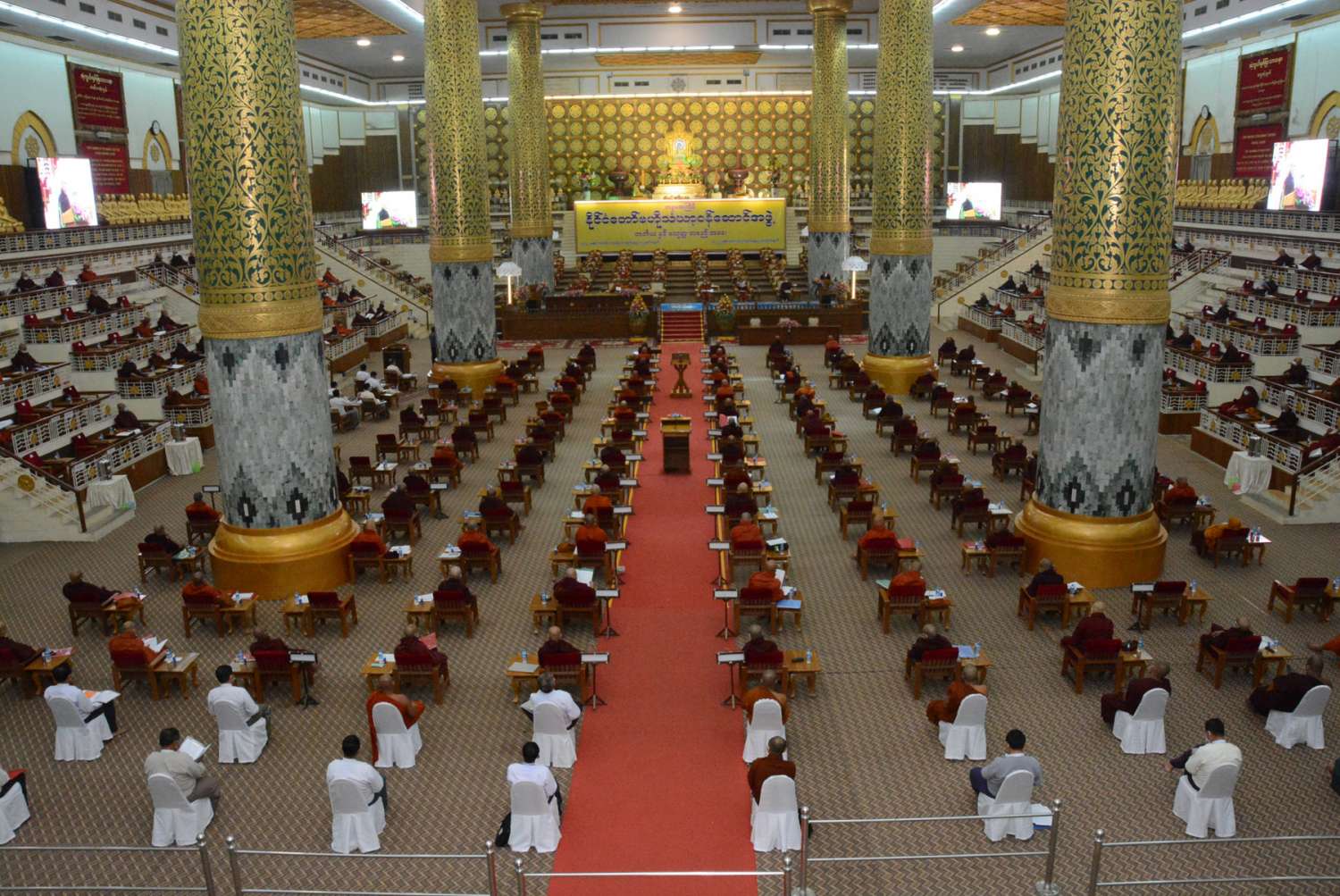 အစည်းအဝေး၏ သဘာပတိဆရာတော်အဖြစ် နိုင်ငံတော် ဗဟိုသံဃာ့ဝန်ဆောင်အဖွဲ့ဥက္ကဋ္ဌ အဘိဓဇမဟာရဋ္ဌဂုရု၊ အဘိဓဇအဂ္ဂမဟာသဒ္ဒမ္မဇောတိက ဒေါက်တာဘဒ္ဒန္တကုမာရာဘိဝံသက ဆောင်ရွက်တော်မူပြီး အခမ်းအနားမှူး ဆရာတော်အဖြစ် တွဲဖက်အကျိုးတော်ဆောင် ဆရာတော် အဂ္ဂမဟာပဏ္ဍိတ၊ အဂ္ဂမဟာ သဒ္ဓမ္မဇောတိကဓဇ ဘဒ္ဒန္တသေဋ္ဌိလက ဆောင်ရွက်တော်မူသည်။
