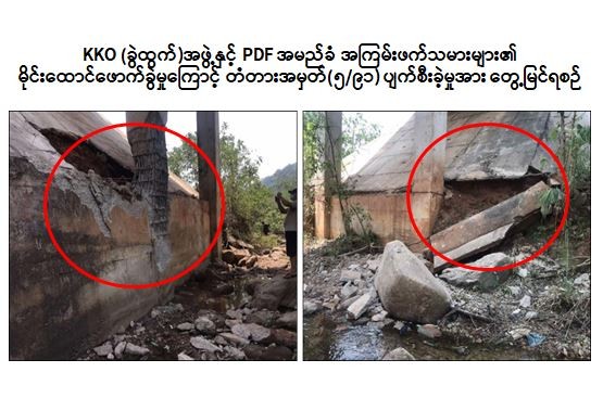 မတ် ၁၃ ရက် နေ့လည်ပိုင်းတွင်လည်း KKO(ခွဲထွက်)အဖွဲ့ နှင့် PDF အမည်ခံ အကြမ်းဖက်သမားများ သည် ကော့ကရိတ်-မြဝတီသွား အာရှလမ်းမကြီးပေါ်ရှိ သံကူကွန် ကရင်အမျိုးအစားတံတား အမှတ်(၅/၉၁)အား မိုင်းထောင်ဖောက်ခွဲဖျက်ဆီးခဲ့သဖြင့် တံတားတိုင်ပဲ့ထွက် ပျက်စီးခဲ့ကြောင်းနှင့် မော်တော်ယာဉ်ငယ်များသာ ဖြတ်သန်းသွားလာနိုင်ပြီး ကုန်တင်ယာဉ်နှင့် အခြားယာဉ်ကြီးများ ဖြတ်သန်းသွားလာ၍ မရကြောင်း သိရှိရသဖြင့် အမြန်ဆုံးပြန်လည်ပြင်ဆင်နိုင်ရေး လုံခြုံရေးတပ်ဖွဲ့ဝင်များနှင့် တာဝန်ရှိသူများက ဆောင်ရွက်လျက်ရှိသည်။