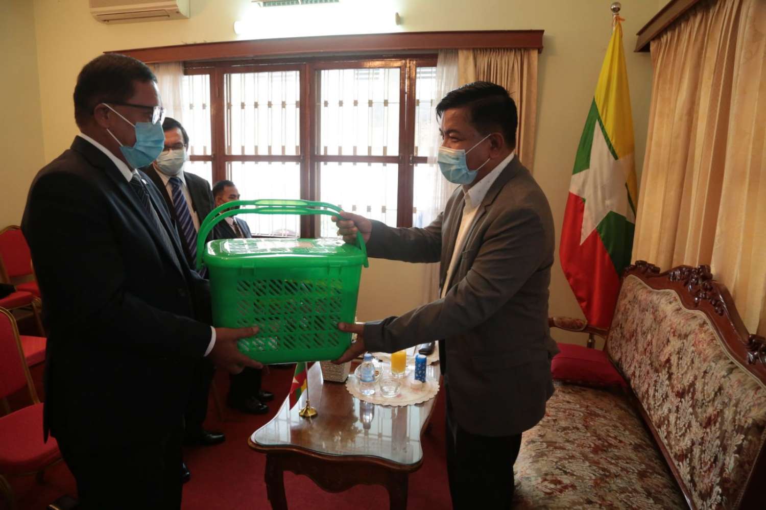 ထို့နောက် သံရုံး၊ စစ်သံရုံး မိသားစုများ၊သင်တန်းသားများအတွက်နိုင်ငံတော် စီမံအုပ်ချုပ်ရေးကောင်စီ ဥက္ကဋ္ဌ တပ်မတော်ကာကွယ်ရေးဦးစီးချုပ် ဗိုလ်ချုပ်မှူးကြီး မင်းအောင်လှိုင်က ပေးအပ်လိုက်သည့် စားသောက်ဖွယ်ရာများနှင့် လက်ဆောင်ပစ္စည်းများကို ညှိနှိုင်းကွပ်ကဲရေးမှူး (ကြည်း၊ရေ၊လေ) ဗိုလ်ချုပ်ကြီး မောင်မောင်အေးက ပေးအပ်ရာ သံအမတ်ကြီး၊ စစ်သံမှူးနှင့် မိသားစုဝင်များ၊ သင်တန်းသားများက လက်ခံရယူခဲ့ကြ ကြောင်းသတင်းရရှိသည်။