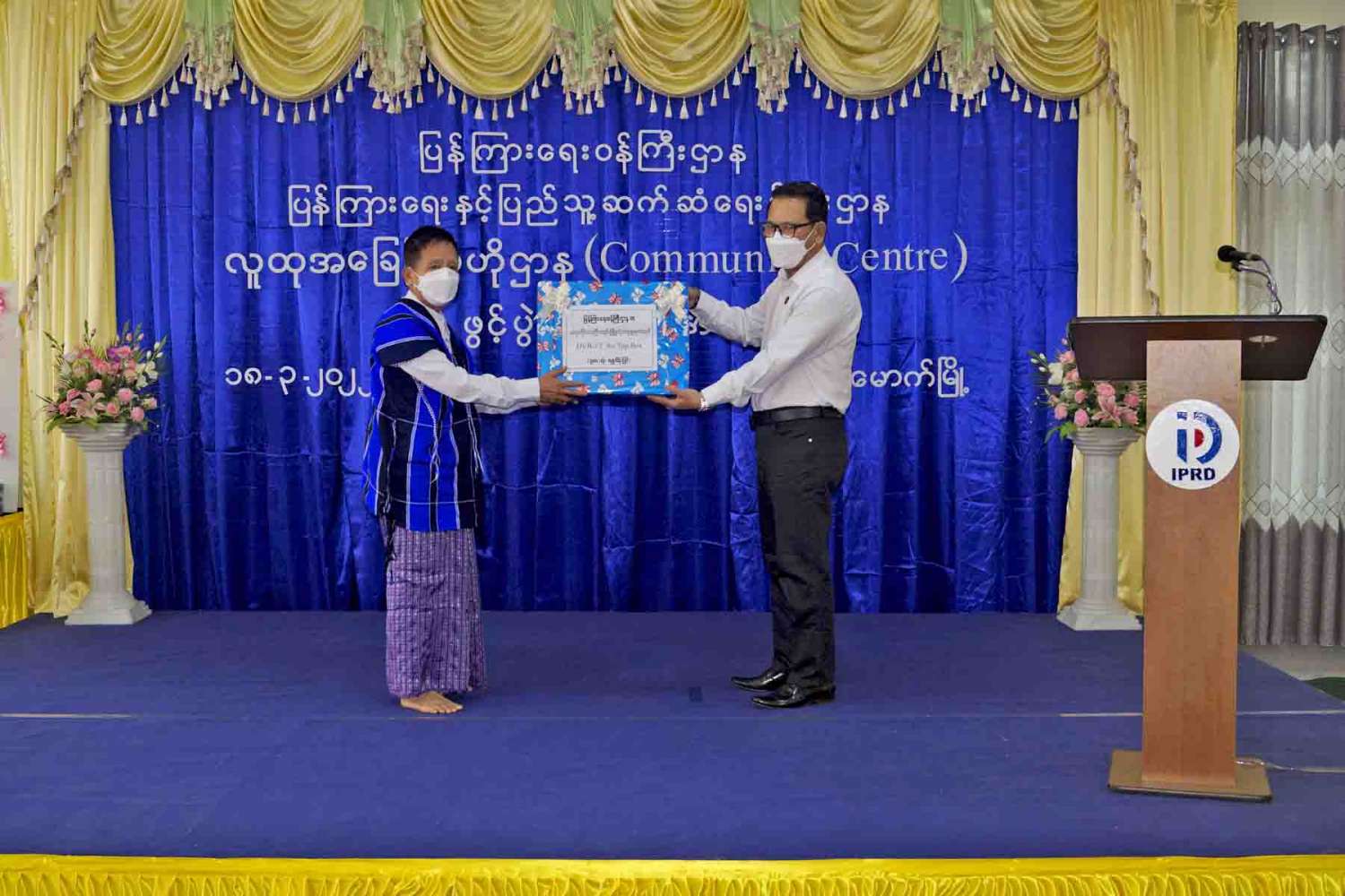 မိမိတို့ဒေသ ရေရှည်ဖွံ့ဖြိုးတိုးတက်ရေးကို မျှော်မှန်း၍ လူထုအခြေပြုဗဟိုဌာနကို ပြည်သူများ အနေဖြင့် အကျိုးရှိရှိ အသုံးပြုကြရန်နှင့် ရေရှည်တည်တံ့ရေးအတွက် ဝိုင်းဝန်းထိန်းသိမ်း ဆောင်ရွက် သွားကြရန် မှာကြားလိုပါကြောင်း ပြောကြားသည်။