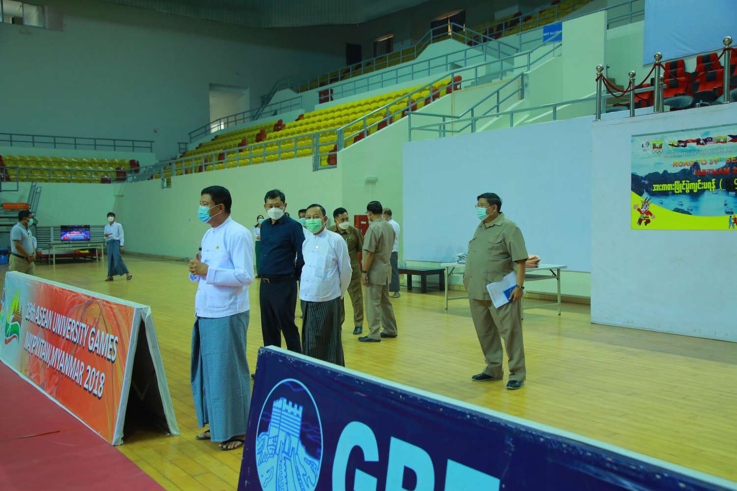 အားကစားနှင့် လူငယ်ရေးရာဝန်ကြီးဌာန ပြည်ထောင်စုဝန်ကြီး ဦးမင်းသိန်းဇံသည် ဒုတိယ ဝန်ကြီး ဦးမျိုးလှိုင်နှင့်အတူ ယနေ့နံနက်ပိုင်းတွင် (၃၁) ကြိမ်မြောက် အရှေ့တောင်အာရှ အားကစားပြိုင်ပွဲ ဝင်ယှဉ်ပြိုင်ရန်အတွက် တရုတ်နိုင်ငံ၌ (Joint Training) ပူးတွဲသွားရောက် လေ့ကျင့်ခဲ့သည့် (ဘော်လီဘော၊ လက်ဝှေ့၊ အလေးမနှင့် ဝူရှူး) အားကစားအဖွဲ့များနှင့် နေပြည်တော်တွင် စခန်းဝင်လေ့ကျင့်လျက်ရှိသည့် (ဂျူဒို၊ ပိုက်ကျော်ခြင်း၊ တိုက်ကွမ်ဒို၊ မြားပစ်၊ ဗိုဗီနမ်) အားကစားအဖွဲ့များ၏ သရုပ်ပြလေ့ကျင့်နေမှုများကို ကြည့်ရှုအားပေးသည်။