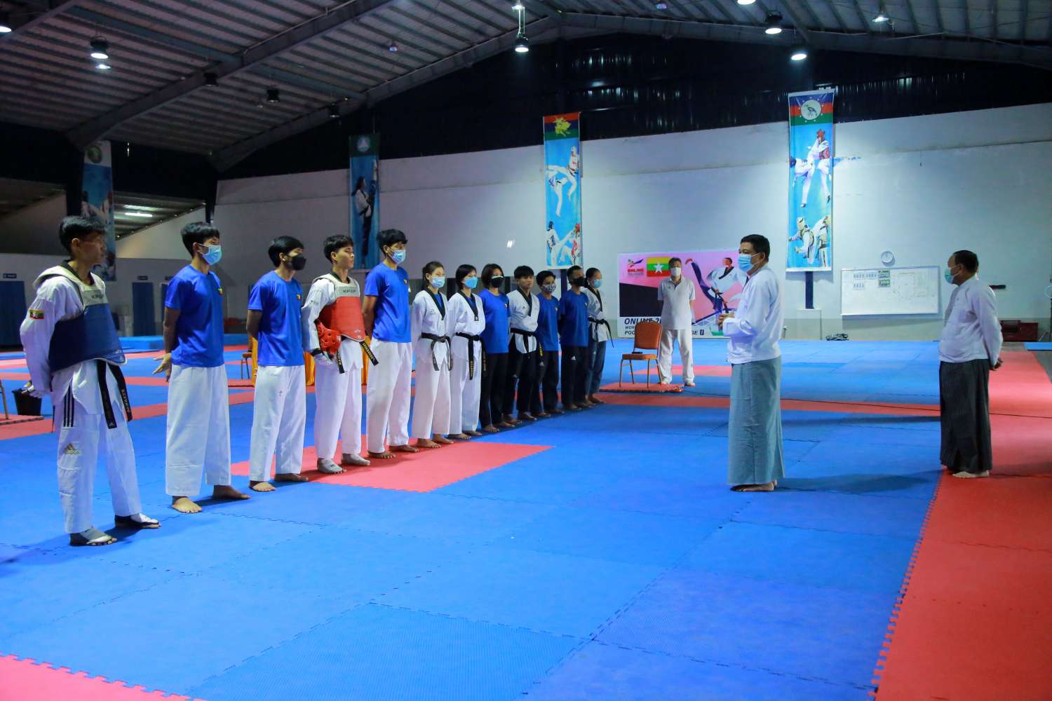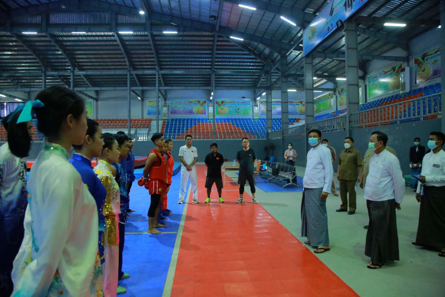 ရှေးဦးစွာ ပြည်ထောင်စုဝန်ကြီးနှင့်အဖွဲ့သည် နေပြည်တော် ဝဏ္ဏသိဒ္ဓိအားကစားရုံ (A) ၌ ဂျူဒို လက်ရွေးစင်အားကစားသမားများ ဝိတ်တန်းအလိုက် သရုပ်ပြယှဉ်ပြိုင်ကစားနေမှုများကို လည်းကောင်း၊ ဝဏ္ဏသိဒ္ဓိအားကစားရုံ (B) ၌ ဘော်လီဘောအားကစားသမားများ လေ့ကျင့်မှု ကိုလည်းကောင်း၊ ဝဏ္ဏသိဒ္ဓိ အားကစားရုံ (C)၌ လေ့ကျင့်နေသော ပိုက်ကျော်ခြင်း အားကစားသမားများ ကိုလည်းကောင်း၊ လက်ဝှေ့လေ့ကျင့်ရေးရုံတွင် လေ့ကျင့်လျက်ရှိသည့် လက်ဝှေ့အားကစားသမားများကိုလည်းကောင်း၊ တိုက်ကွမ်ဒို လေ့ကျင့်ရေးရုံတွင် လေ့ကျင့် လျက်ရှိသည့် တိုက်ကွမ်ဒိုအားကစားသမားများကိုလည်းကောင်း၊ မြားပစ်အားကစားကွင်းတွင် လေ့ကျင့်လျက်ရှိသည့် မြားပစ်အားကစားသမားများ၏ လေ့ကျင့်ပစ်ခတ်ကစားနေမှုများကို လည်းကောင်း ကြည့်ရှုအားပေးပြီး ကျန်းမာမှရည်မှန်းချက်ကို အကောင်အထည်ဖော် ဆောင်ရွက်နိုင်မည်ဖြစ်ပြီး နိုင်ကိုနိုင်ရမည်ဆိုသည့် မလျော့သော ဇွဲ၊ စိတ်ဓာတ်၊ တစ်ဦးကောင်း တစ်ယောက်ကောင်းစိတ် မမွေးဘဲ အသင်း/အဖွဲ့အစည်း စိတ်ဓာတ်တို့ဖြင့် ကြိုးစားလေ့ကျင့် ကြရန်လိုအပ်ကြောင်း၊ တရုတ်နိုင်ငံတွင် ပူးတွဲသွားရောက်လေ့ကျင့်စဉ် ရရှိခဲ့သည့် အတွေ့အကြုံ များ၊ နည်းစနစ်ပိုင်းများအတိုင်း ဆက်လက်လေ့ကျင့် ဆောင်ရွက်သွားကြရန်၊ ပြိုင်ပွဲယှဉ်ပြိုင်ရာ တွင် ပြိုင်ဘက်၏ အားနည်းချက်၊ အားသာချက်ကို အသုံးချပြီး ဖြတ်ထိုးဉာဏ်ဖြင့် ချက်ကောင်းထိအောင် ကိုယ်စွမ်းဉာဏ်စွမ်းနှင့် အားကစားသမားကောင်းစိတ်ဓာတ် ထားပြီး မျှမျှတတ ကြိုးစားယှဉ်ပြိုင်သွားကြရန် လိုအပ်ကြောင်း ပြောကြားခဲ့သည်။
