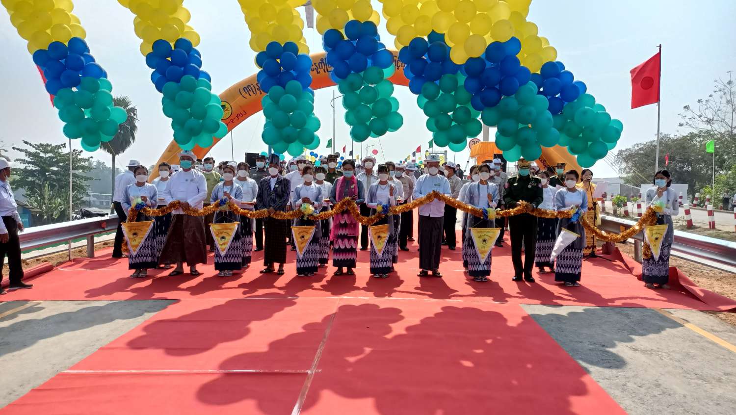 ဦးစွာ နိုင်ငံတော်စီမံအုပ်ချုပ်ရေးကောင်စီဝင် ဒေါ်အေးနုစိန်က ယနေ့ ဧရာ၀တီတိုင်းဒေသကြီး မြောင်းမြခရိုင်၊ ဝါးခယ်မမြို့နယ်ရှိ (၇၈၇)ပေ အရှည်ရှိသည့် ကျွန်းကုန်းတံတားကြီးကို (၇၇)နှစ်မြောက် တပ်မတော်နေ့ကို ကြိုဆိုဂုဏ်ပြုသည့်အနေဖြင့် ဖွင့်လှစ်ပေးခဲ့သည့်အတွက် ဒေသခံများနှင့် ထပ်တူထပ်မျှ ဝမ်းသာကြည်နူးရပါကြောင်း။