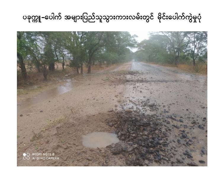 အလားတူ မကွေးတိုင်းဒေသကြီး ပခုက္ကူမြို့နယ်၊ ညောင်ပင်လှကျေးရွာအနီးရှိ ပခုက္ကူ - ပေါက် အများပြည်သူသွား ကားလမ်းအား မတ်လ ၂၃ ရက်နေ့ နံနက် ၁၀ နာရီခွဲခန့်တွင် PDF အမည်ခံ အကြမ်းဖက်သမားများက လက်လုပ်မိုင်းများဖြင့် ဖောက်ခွဲဖျက်ဆီးခဲ့သည်။