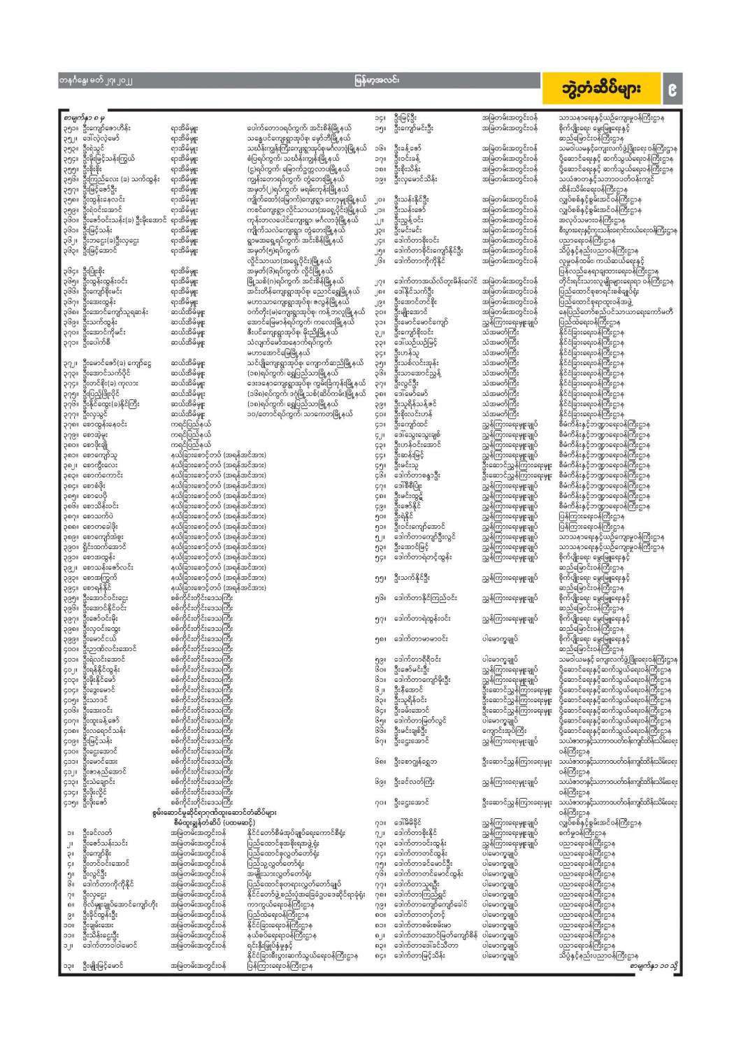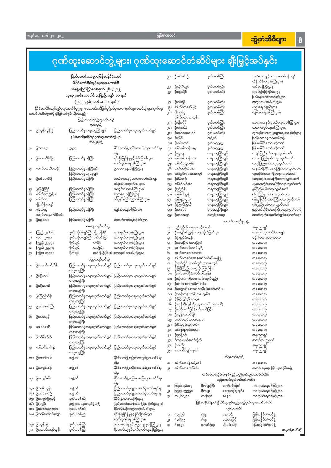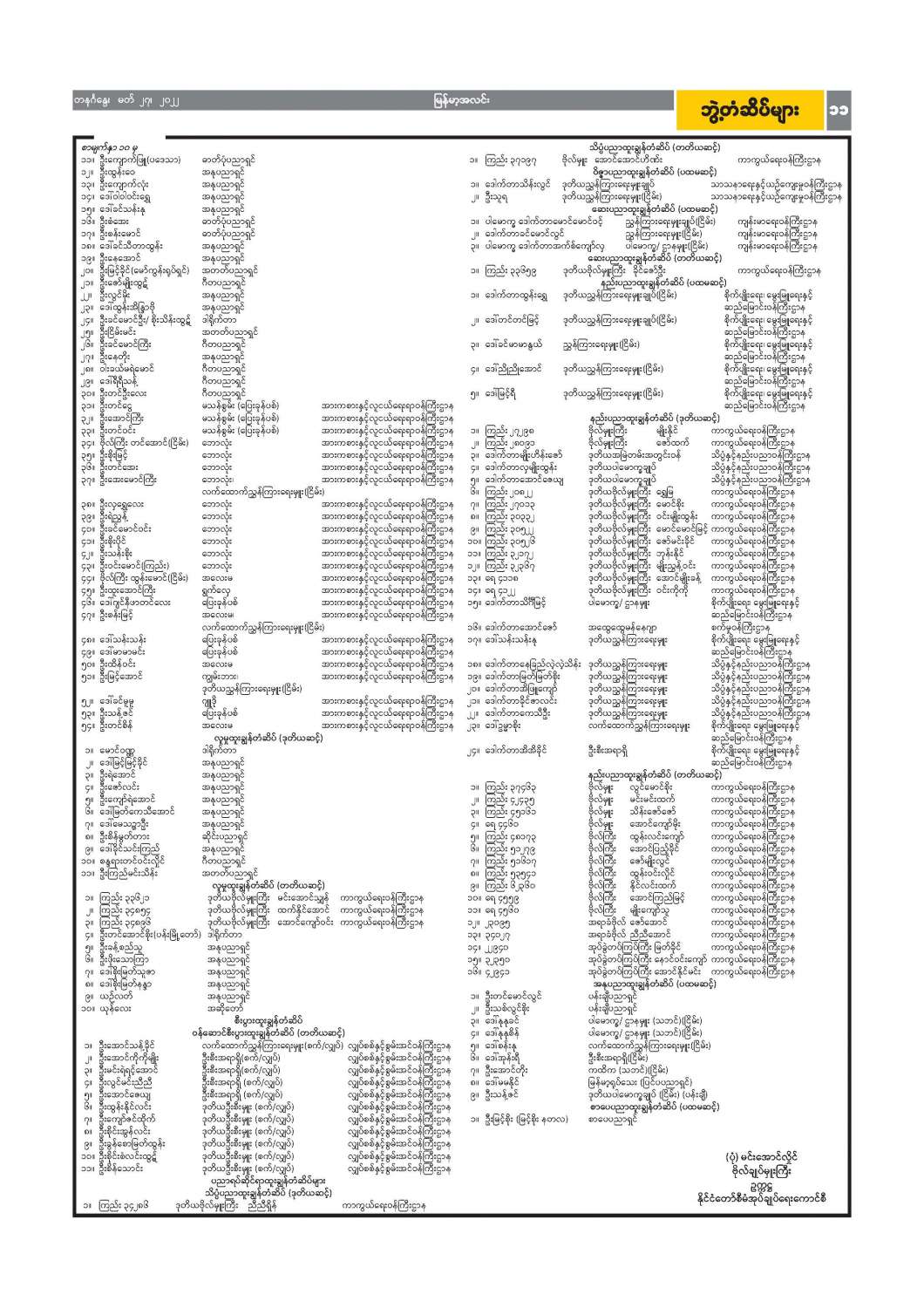 ဝန်ထမ်းအဖွဲ့အစည်းအကြီးအမှူးများ ပြောင်းရွှေ့ခန့်ထားခြင်း