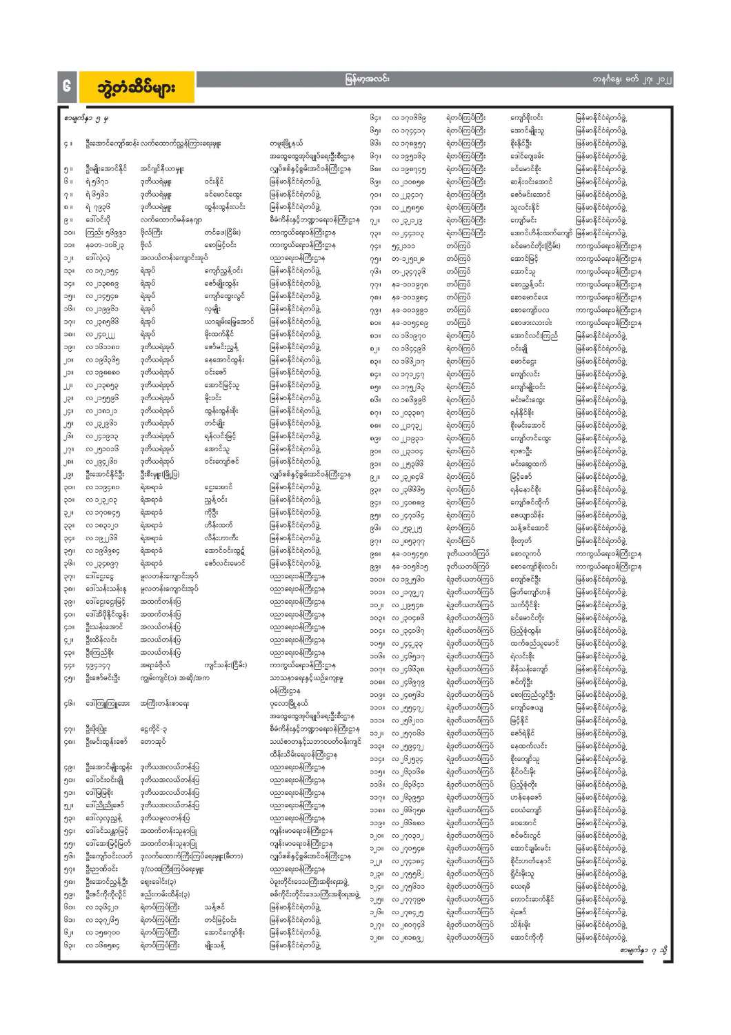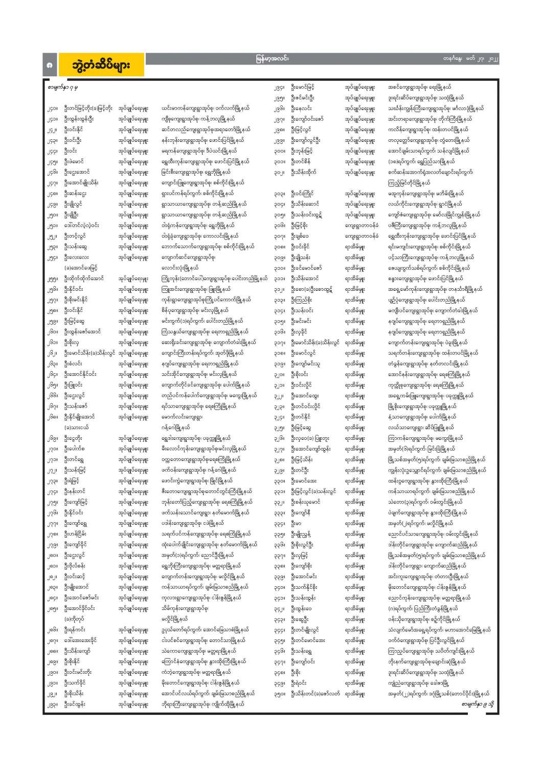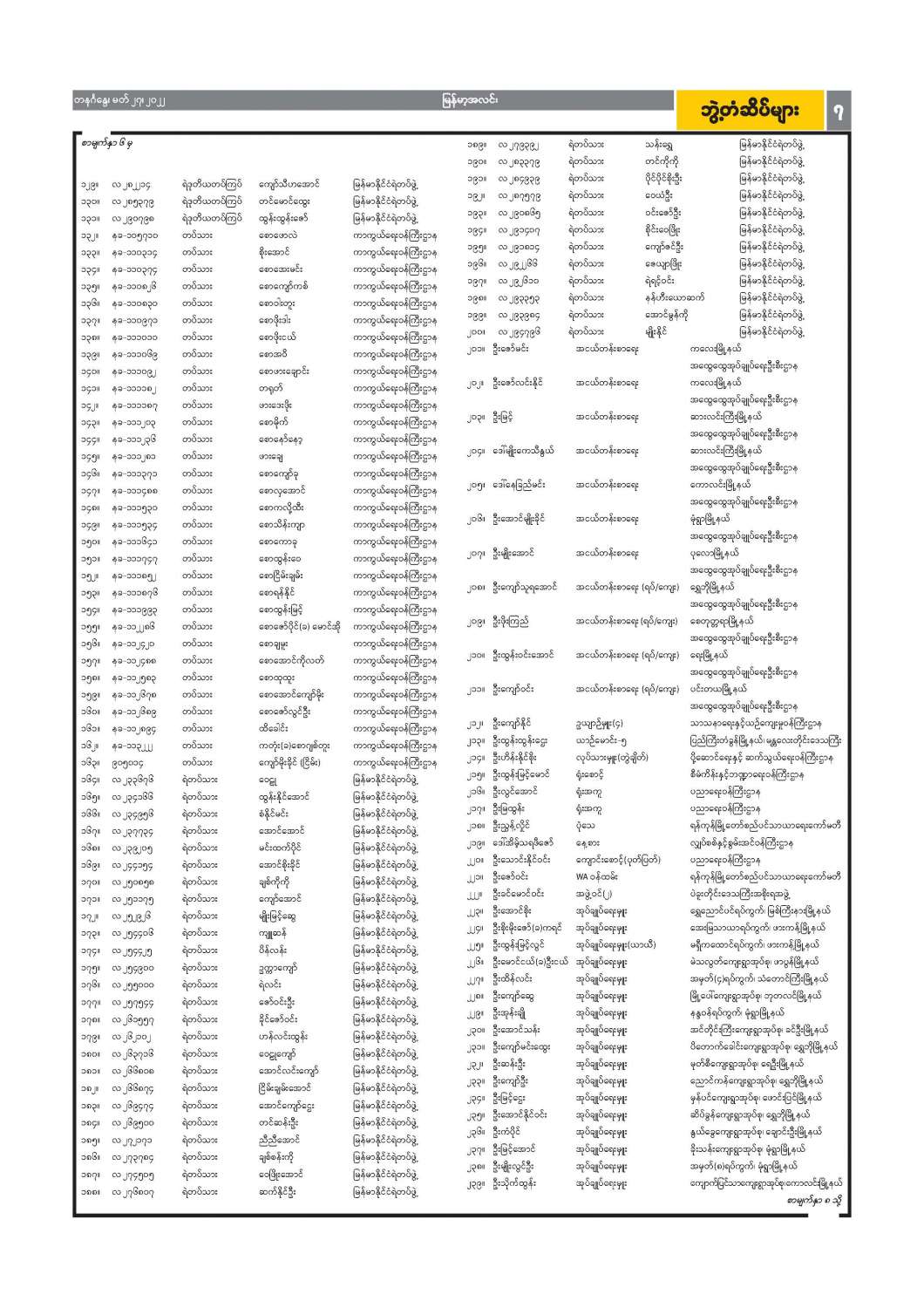 ဝန်ထမ်းအဖွဲ့အစည်းအကြီးအမှူးများ ပြောင်းရွှေ့ခန့်ထားခြင်း