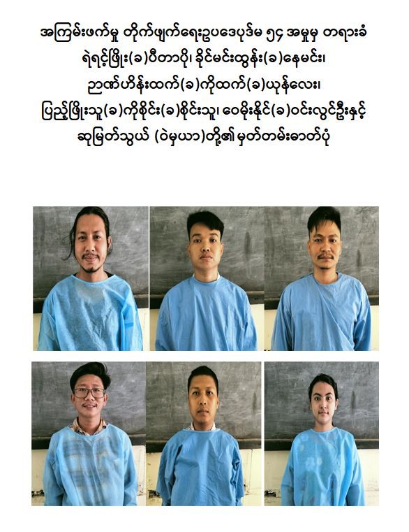 ရန်ကုန်တိုင်းဒေသကြီး၊ မြောက်ဥက္ကလာပမြို့နယ်၊ ဒေါပုံမြို့နယ်နှင့် အင်းစိန်မြို့နယ်နေ ဆုဝေနှင်း()ဦးတင့်လွင်၊ ဆုမြတ်သွယ် ()ဦးစိန်မိုး၊ ခိုင်မင်းထွန်း ()နေမင်း ()ဦးလှနိုင်၊ ဉာဏ်ဟိန်းထက် ()ကိုထက် ()ယုန်လေး ()ဦးစိုးဝင်း၊ ပြည့်ဖြိုးသူ()ကိုစိုင်း ()စိုင်းသူ()ဦးအေးသန်း၊ ရဲရင့်ဖြိုး()ပီတာပို()ဦးညီညီလွင်၊ ဝေမိုးနိုင်()ဝင်းလွင်ဦး ()ဦးခင်ထွန်းနှင့် သန်းဇော်()ဝတုတ်()ကျောင်းဆရာ() ဦးမောင် တို့သည် မြောက်ဉက္ကလာပမြို့နယ်၊ ()ရပ်ကွက်ရှိ Wifi ကားရေဆေးဆိုင်မှ ဆိုင်ရှင်ဖြစ်သူအား သုနန္ဒာလမ်းနှင့် မေဓာဝီလမ်းဆုံ၌ သေနတ်ဖြင့်ပစ် ခတ်သတ်ဖြတ်ခဲ့ပြီး နိုင်ငံတော်က သတ်မှတ်ကြေညာထားသည့် အကြမ်းဖက်အဖွဲ့အစည်းများ၏ လက်အောက်ခံအဖြစ် အများပြည်သူ၏ လုံခြုံရေးကိုထိခိုက်ဆုံးရှုံးစေရန် အကြမ်းဖက် မှုကျူးလွန်ခဲ့ခြင်းကြောင့် လည်းကောင်း၊ ဆုမြတ်သွယ်()ဦးစိန်မိုး၊ ခိုင်မင်းထွန်း ()နေမင်း() ဦးလှနိုင်၊ ဉာဏ်ဟိန်းထက်() ကိုထက်()ယုန်လေး()ဦးစိုးဝင်း၊ ပြည့်ဖြိုးသူ() ကိုစိုင်း()စိုင်းသူ()ဦးအေးသန်း၊ ရဲရင့်ဖြိုး()ပီတာပို() ဦးညီညီလွင်၊ ဝေမိုးနိုင်() ဝင်းလွင်ဦး()ဦးခင်ထွန်း၊ သန်းဇော်()ဝတုတ်() ကျောင်းဆရာ() ဦးမောင် နှင့် ကိုလတ် တို့သည် မြောက်ဥက္ကလာပမြို့မရဲစခန်း အပါအဝင် အများ ပြည်သူများ သွားလာလျက်ရှိသည့် နေရာများ၊ လုံခြုံရေးစခန်းများ၊ ဘဏ်များ၊ နိုင်ငံပိုင်အဆောက်အဦများနှင့် လုံခြုံရေးတာဝန်ထမ်းဆောင်နေသည့် လုံခြုံရေး တပ်ဖွဲ့ဝင်များအား လက်နက်ငယ်များ၊ လက်လုပ်မိုင်းများဖြင့် ဖောက်ခွဲတိုက်ခိုက်ခြင်းများကို လုပ်ဆောင်ခဲ့ခြင်းတို့ကြောင့်လည်းကောင်း စစ်အုပ်ချုပ်ရေး (Martial Law) စစ်ခုံရုံးဖွဲ့၍ စစ်ဆေးမှုများ ဆောင်ရွက်ခဲ့ရာ အကြမ်းဖက်မှုတိုက်ဖျက်ရေး ဉပဒေပုဒ်မ ၅၄ အရ ၂၀၂၂ ခုနှစ်၊ မတ် ၃၀ ရက်တွင် ၎င်းတို့အားသေဒဏ်ပြစ်ဒဏ်ကို အသီးသီးအမိန့်ချမှတ်လိုက်ကြောင်း သိရှိရသည်။