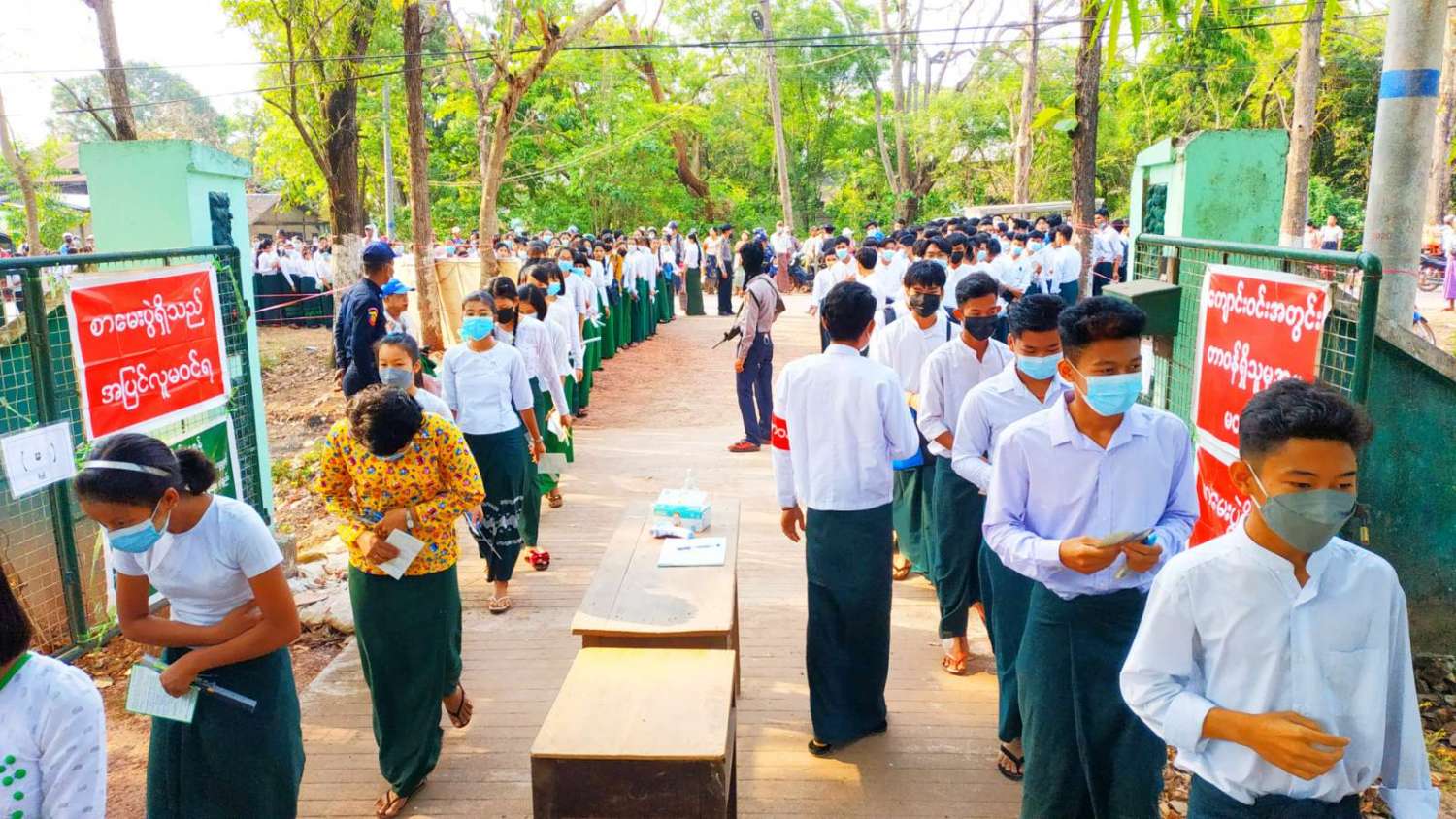 ၂၀၂၁-၂၀၂၂ ပညာသင်နှစ် တက္ကသိုလ်ဝင်စာမေးပွဲကို ယနေ့တွင် စတင်ကျင်းပလျက်ရှိရာ တိုင်းဒေသကြီးနှင့် ပြည်နယ်အသီးသီးရှိ အခြေခံပညာ အထက်တန်းကျောင်းများ၌ ကျောင်းသား၊ ကျောင်းသူများ ဝင်ရောက်ဖြေဆိုလျက်ရှိသည်။