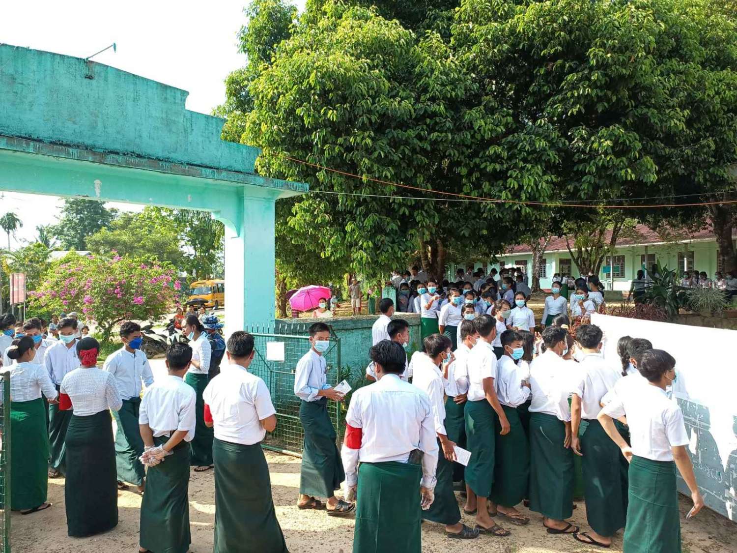 စာမေးပွဲ ဖြေဆိုခြင်းမပြုမီ ကိုဗစ်-၁၉ ရောဂါဆိုင်ရာ စည်းမျဉ်း/စည်းကမ်းများနှင့်အညီ Mask များ တပ်ဆင်လာစေခြင်း၊ အပူချိန်တိုင်းတာခြင်း၊ စာမေးပွဲ ဖြေဆိုခွင့်ကတ်များ မှန်/မမှန် စစ်ဆေးခြင်း များကို ဆရာ၊ ဆရာမများက စနစ်တကျ စစ်ဆေးခြင်းများကို ဆောင်ရွက်ကြသည်။