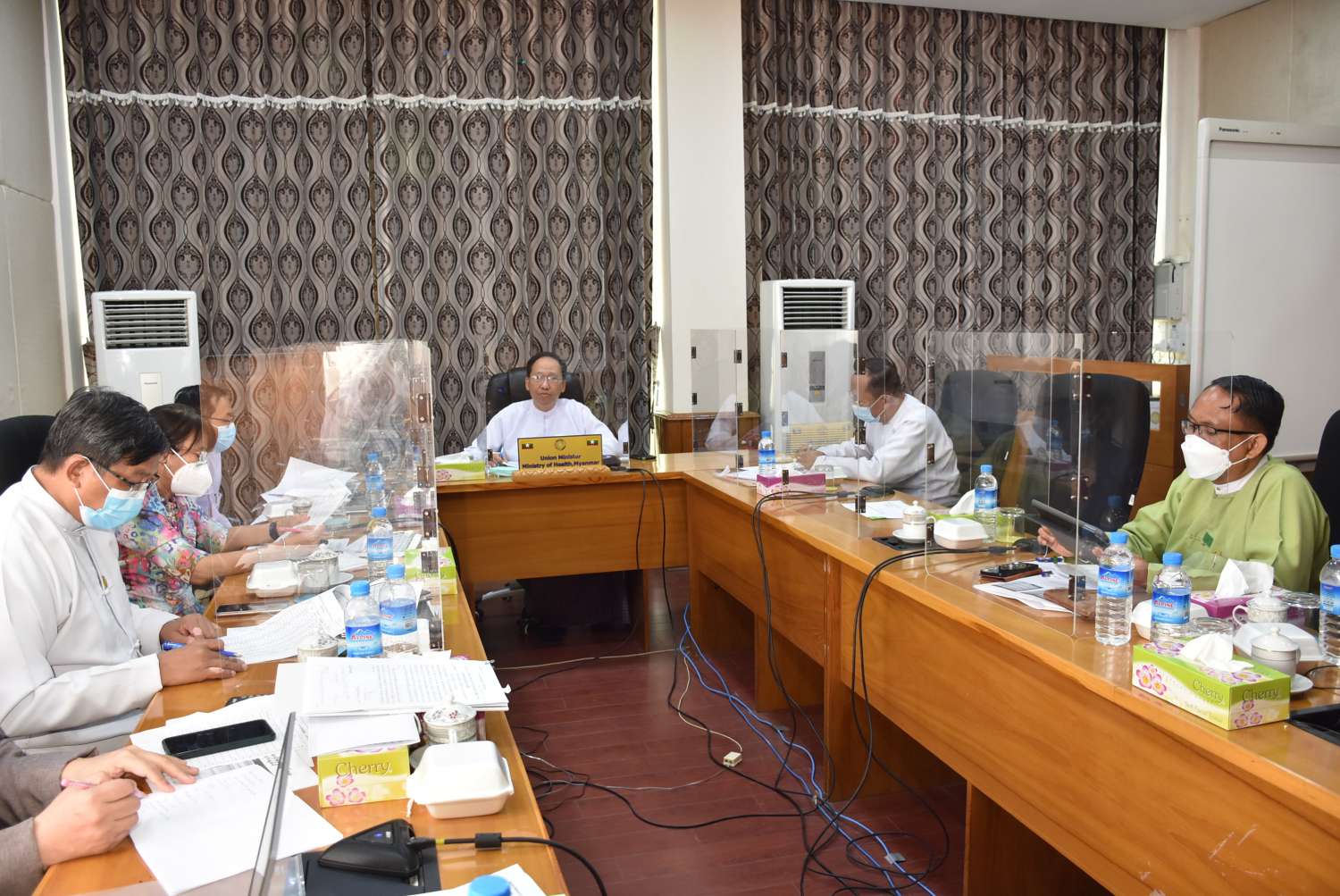 အစည်းအဝေးတွင် ပြည်ထောင်စုဝန်ကြီး၊ ပါမောက္ခ ဒေါက်တာ သက်ခိုင်ဝင်းက ပြည်ထောင်စု နယ်မြေ နေပြည်တော်၊ တိုင်းဒေသကြီး / ပြည်နယ် များတွင် ကိုဗစ်-၁၉ ရောဂါကာကွယ်ဆေးကို (၂၀၂၁)ခုနှစ် ၊ နှစ်ကုန်တွင် ရည်မှန်းလူဦး ရေ၏ (၅၀) ရာခိုင်နှုန်းကျော် ထိုးနှံပေးနိုင်ခဲ့ပြီး (၂၀၂၂)ခုနှစ်၊ ဧပြီလကုန် တွင်ရည်မှန်း လူဦးရေ၏ ရာနှုန်းပြည့်ထိုးနှံပြီးစီးနိုင်ရေးအတွက် အရှိန်အဟုန်မြှင့်တင် ဆောင်ရွက်လျက် ရှိပါကြောင်း၊ ကာကွယ်ဆေး လွှမ်းခြုံမှုအားကောင်းခဲ့၍ စတုတ္တလှိုင်း တွင် ကိုဗစ်-၁၉ ရောဂါ ဖြစ်ပွားမှု နှုန်းနှင့်သေဆုံးမှုလျော့နည်းခဲ့ခြင်းပြီး ဖြေလျှော့မှုများဖြစ်သည့် လေကြောင်းလိုင်းများ ပြန်လည် ဖွင့်လှစ်နိုင်ရေး၊ ရုပ်ရှင်ရုံများပြန်လည် ဖွင့်လှစ်နိုင်ရေးအတွက် စီမံဆောင်ရွက်လျက်ရှိပါကြောင်း စတုတ္တလှိုင်းအတွင်း ကိုဗစ်-၁၉ ရောဂါကြောင့် သေဆုံးရမှုများမှာ ကာကွယ်ဆေးအကြိမ် ပြည့်မထိုးနှံထားသူ အများစု ဖြစ်ပါကြောင်း။
