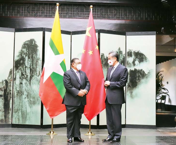 ဟွမ်းရှမ်မြို့သို့ ရောက်ရှိနေစဉ်အတွင်း ဧပြီ ၁ ရက် ဒေသစံတော်ချိန် ညနေ ၅ နာရီတွင် နိုင်ငံခြားရေးဝန်ကြီးဌာန ပြည်ထောင်စုဝန်ကြီး ဦးဝဏ္ဏမောင်လွင်သည် တရုတ်ပြည်သူ့ သမ္မတ နိုင်ငံ နိုင်ငံတော်ကောင်စီဝင်နှင့် နိုင်ငံခြားရေးဝန်ကြီး မစ္စတာဝမ်ယိနှင့် တွေ့ဆုံခဲ့ပြီး နိုင်ငံခြားရေးဝန်ကြီးများ ဦးဆောင်သည့် နှစ်နိုင်ငံဆွေးနွေးပွဲ ကျင်းပခဲ့သည်။ ဆွေးနွေးပွဲတွင် ရှိရင်းစွဲ ဆွေမျိုးပေါက်ဖော်ဆက်ဆံရေးကို ပိုမိုတိုးတက်ခိုင်မာရေး၊ မြန်မာ-တရုတ် နှစ်နိုင်ငံ အကြား ပူးပေါင်းဆောင်ရွက်လျက်ရှိသည့် စီမံကိန်းများကို နှစ်ဖက်အပြန်အလှန် အကျိုးရှိစေမှု အပေါ်မူတည်ပြီး အရှိန်အဟုန်မြှင့် အကောင်အထည်ဖော်သွားရေး၊ ကိုဗစ်-၁၉ ကာကွယ်၊ ထိန်းချုပ်ရေးဆိုင်ရာ ပူးပေါင်းဆောင်ရွက်မှုများ ပိုမိုအားကောင်းလာစေရေး၊ တရုတ်နိုင်ငံ ချုံချင်းမြို့၌ မြန်မာကောင်စစ်ဝန်ချုပ်ရုံးဖွင့်လှစ်သွားရေး၊ မြန်မာ-တရုတ် နှစ်နိုင်ငံ နယ်စပ်ဒေသ တစ်လျှောက် ငြိမ်းချမ်းရေးနှင့် တည်ငြိမ်ရေးကို ထိန်းသိမ်းရေးအတွက် ဆက်လက်ပူးပေါင်း ဆောင်ရွက်ရေး၊ မြန်မာနိုင်ငံမှ စိုက်ပျိုးရေးထုတ်ကုန်များအတွက် နှစ်နိုင်ငံအကြား နယ်စပ် ကုန်သွယ်ရေး လျင်မြန်ချောမွေ့စေရေးနှင့် ကုန်သွယ်ရေးနှင့် စီးပွားရေးပူးပေါင်း ဆောင်ရွက်မှု မြှင့်တင်ရေးနှင့် မြန်မာ-တရုတ် နှစ်နိုင်ငံအကြား ယာယီ နယ်စပ်ဂိတ်နှင့် အမြဲတမ်းနယ်စပ်ဂိတ် တိုးမြှင့်ဖွင့်လှစ်သွားနိုင်မည့် အလားအလာများကို ရင်းနှီးစွာအမြင်ချင်း ဖလှယ်ဆွေးနွေး ခဲ့ကြသည်။