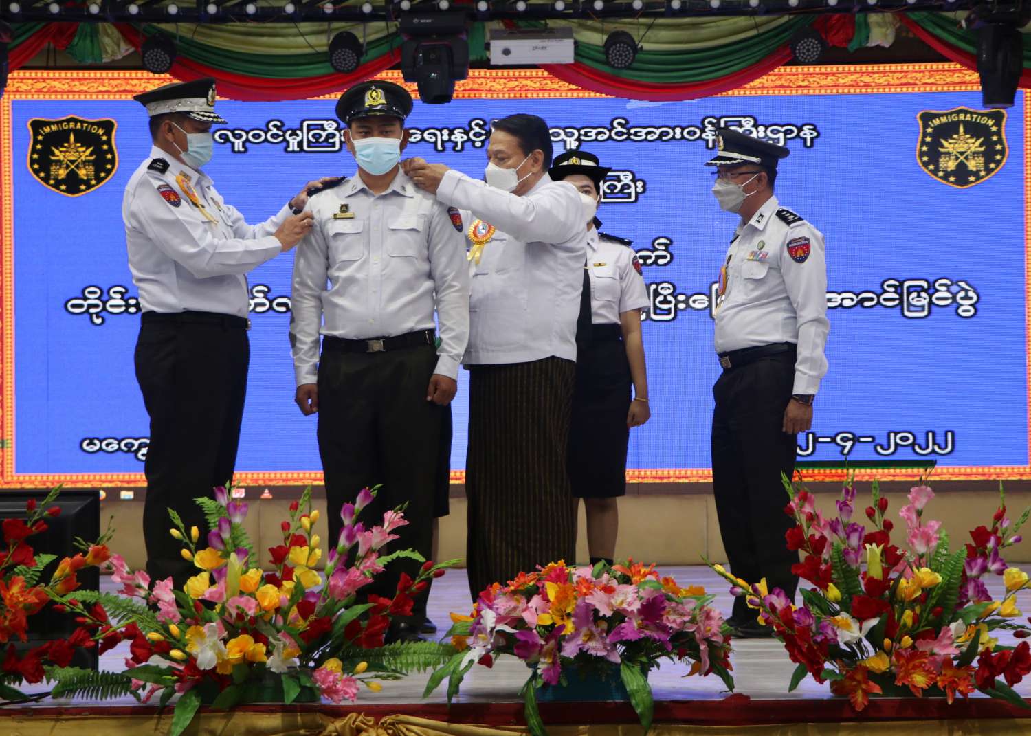 ရှေးဦးစွာ ပြည်ထောင်စုဝန်ကြီး ဦးခင်ရီက နောင်ကျင်းပမည့် ရွေးကောက်ပွဲများ၌ ဆန္ဒမဲပေးပိုင်ခွင့် ရှိသူအားလုံး ကိုင်ဆောင် သင့်သည့် ကတ်ပြားတစ်မျိုးမျိုး ကိုင်ဆောင်မဲပေးနိုင်ရေးအတွက် မိမိတို့ဝန်ကြီးဌာနမှ ပန်းခင်းစီမံချက်ဖြင့် နိုင်ငံတစ်ဝန်း ကွင်းဆင်းဆောင်ရွက်ပေးလျက်ရှိပါကြောင်း၊ ပန်းခင်း စီမံချက်သည် ၂၀၂၁ ခုနှစ်၊ မေ (၃)ရက်မှ ၂၀၂၂ ခုနှစ်၊ နိုဝင်ဘာ (၃)ရက်အထိ (၁၈) လကြာ သတ်မှတ်၍ တိုင်းဒေသကြီး/ ပြည်နယ်အလိုက် ဆောင်ရွက်ရန် အရေအတွက် လျာထားသတ်မှတ် ဆောင်ရွက်ခြင်း ဖြစ်ပါကြောင်း၊ ယင်းသို့ ဆောင်ရွက်ရာတွင်လည်း တိုင်းဒေသကြီး/ ပြည်နယ်အလိုက် ကိုဗစ်-၁၉ ကပ်ရောဂါ ကူးစက်ဖြစ်ပွားမှုအခြေအနေ၊ လုံခြုံရေးဆိုင်ရာ အဟန့်အတားများကြားမှ နည်းလမ်း ပေါင်းစုံဖြင့် သတ်မှတ်ကာလအတွင်း လျာထားချက်ပြည့်မီပြီးစီးအောင် ဆောင်ရွက်ကြရခြင်း ဖြစ်ပါကြောင်း၊ ပန်းခင်းစီမံချက် စတင်ချိန်မှ(၁၁)လတာကာလအတွင်း ပဲခူး၊ ဧရာဝတီ၊ နေပြည်တော်၊ မန္တလေးနှင့် တနင်္သာရီတိုင်းဒေသကြီးတို့သည် တိုင်းလုံးကျွတ်လျာထားချက် ရာနှုန်းပြည့် ပြီးမြောက် အောင်မြင် အောင်ဆောင်ရွက်နိုင်ခဲ့ပြီး မကွေးတိုင်းဒေသကြီးသည် နိုင်ငံသားစိစစ်ရေး ကတ်ပြား (၈၆၇၉၀) လျာထားရာ ယခုအထိ (၁၀၇၈၂၁)ကတ်၊ (၁၂၄ ဒသမ ၃) ရာခိုင်နှုန်း ဆောင်ရွက်ပြီးစီး ပြီဖြစ်သည့်အတွက် (၆) ခုမြောက် တိုင်းလုံးကျွတ်လျာထားချက် ပြီးမြောက်အောင်မြင်သည့် တိုင်းဒေသကြီးဖြစ်ပါကြောင်း၊ နိုင်ငံသားကတ်(မှတ်ပုံတင်)ကို ပြည်သူများ လွယ်လွယ်ကူကူ ရရှိကိုင်ဆောင်နိုင်ရေးအတွက် အစိုးရအဆက်ဆက် စီမံချက်များဖြင့် ဆောင်ရွက်ပေးခဲ့ကြသော် လည်း နိုင်ငံသားကတ်၏ အသုံးဝင်တန်ဖိုးကို သိရှိနားလည်ခြင်းမရှိသဖြင့် ရယူကိုင်ဆောင်ခြင်းမပြုဘဲ၊ ဒေသအာဏာပိုင် အဖွဲ့အစည်းများ၏ ထောက်ခံချက်များဖြင့် သွားလာလုပ်ကိုင်ဆောင်ရွက်မှုများ ရှိနေကြပါကြောင်း၊ ထို့ကြောင့် မိမိတို့အနေဖြင့် မိဘပြည်သူများသို့ အသိပေးကြေညာချက် ထုတ်ပြန်ကာ ဧပြီ (၁) ရက်မှစ၍ ခရီးသွားလာမှု၊ တည်းခိုနေထိုင်မှုနှင့် နိုင်ငံသားကတ် (မှတ်ပုံတင်)ဖြင့် ဆောင်ရွက်ရမည့် လုပ်ငန်းများတွင် ထောက်ခံစာဖြင့် ခွင့်မပြုတော့ဘဲ နိုင်ငံသားကတ် (မှတ်ပုံတင်)ဖြင့် ဆောင်ရွက်ကြရန်နှင့် သက်ဆိုင်ရာတာဝန်ရှိ သူများက စစ်ဆေးသည့်အခါ နိုင်ငံသားကတ်ရှိကြောင်း ပြသကြရန် ဖြစ်ပါကြောင်း၊ ယင်းကဲ့သို့ အသိပေးကြေညာရခြင်းမှာ နိုင်ငံသားအားလုံး နိုင်ငံသားကတ် (မှတ်ပုံတင်) ရရှိကိုင်ဆောင်စေလို သည့်အတွက် ကြောင့်ဖြစ်ပါကြောင်း၊ နိုင်ငံသားစိစစ်ရေး ကတ်ပြားသည် နိုင်ငံသားတစ်ဦး၏ လူမှုဘဝဆောင်ရွက်မှုတိုင်းတွင် မရှိမဖြစ်အရေး ပါသည့် ကတ်ပြားဖြစ်ပြီး နိုင်ငံတော်က ဥပဒေနှင့်အညီ အ