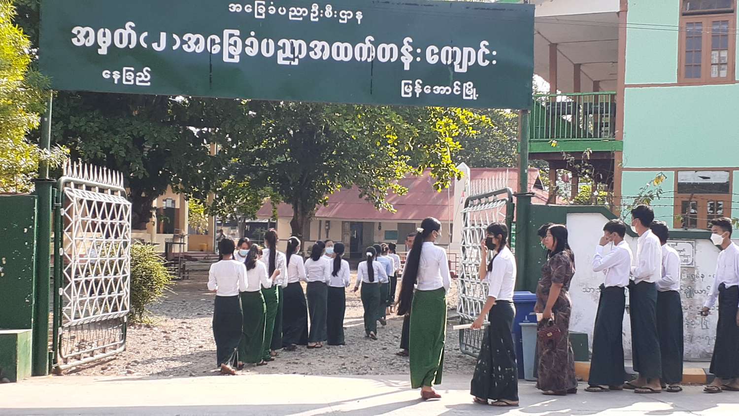 ၂၀၂၂ ခုနှစ် တက္ကသိုလ်ဝင်စာမေးပွဲကို ဧရာဝတီတိုင်းဒေသကြီး၊ ဟင်္သာတခရိုင်၊ မြန်အောင်မြို့နယ် အတွင်းရှိ စာစစ်ဌာန (၉)ခု၌ ဓာတုဗေဒဘာသာရပ်အား ယနေ့ နံနက်က  ဆက်လက် ဖြေဆိုလျက်ရှိရာ တက္ကသိုလ်ဝင်စာမေးပွဲဖြေဆိုမည့် ကျောင်းသား/ ကျောင်းသူများ အေးချမ်းစွာဖြေဆိုနိုင်ရန် မြန်အောင်မြို့ နယ်စီမံအုပ်ချုပ်ရေးအဖွဲ့ ဦးဆောင်မှုဖြင့် တာဝန်ရှိသူများက သက်ဆိုင်ရာစာစစ်ဌာနများ၌ ဆောင်ရွက် ပေးလျက် ရှိကြောင်း သိရှိရသည်။