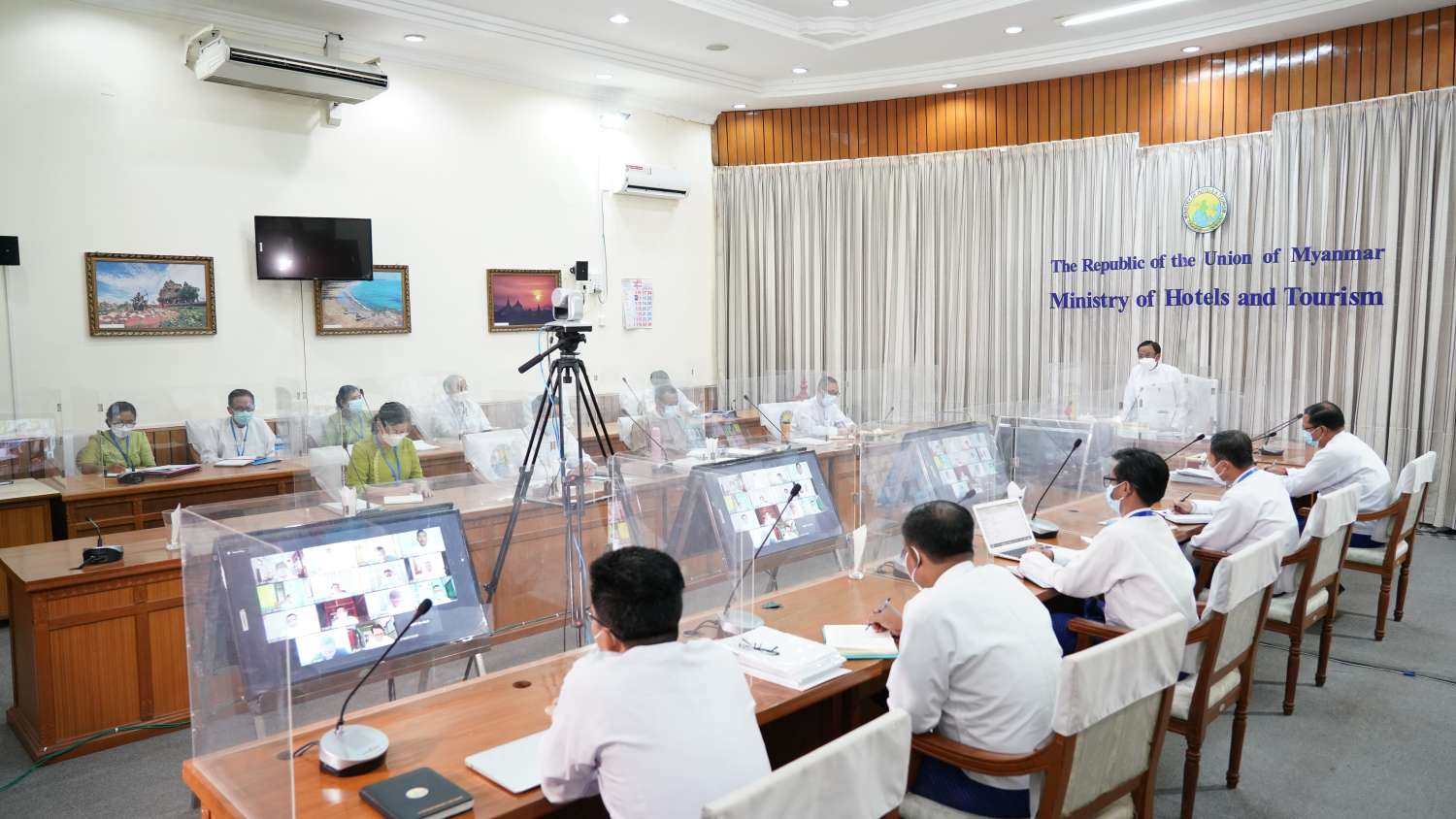 ဟိုတယ်နှင့် ခရီးသွားလာရေးဝန်ကြီးဌာန၊ ပြည်ထောင်စုဝန်ကြီး ဒေါက်တာဌေးအောင် သည် ယနေ့နံနက်ပိုင်းတွင် အတားအဆီးမဲ့သွားလာနိုင်သော ခရီးသွားလုပ်ငန်း (Barrier Free Tourism) အကောင်အထည်ဖော်ဆောင်နိုင်ရေးအတွက် နေပြည်တော်ကောင်စီနယ်မြေ၊ တိုင်းဒေသကြီး/ ပြည်နယ်များမှ ရုံးခွဲတာဝန်ခံများကို ဝန်ကြီးဌာန နီလာခန်းမ၌ ဗွီဒီယို ကွန်ဖရင့်စနစ်ဖြင့် တွေ့ဆုံသည်။